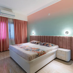 Bedrooms designs are minimalist and suave. One can find intense veneered wall backdrop, or an artistically painted wall in beautiful shades of pink and mint green.