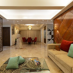The interior design is crafted with a contemporary scheme, with Indian roots in mind. There is a play of textures, motifs, lattice designs and well-lit spaces. A geometric floral motif is used in variable repetition all over the house to create harmony. This brings out warmth and feeling of...