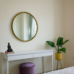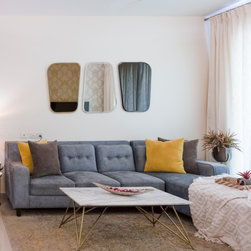 Custom mirror installation in the living room and the customized light fixtures in the dining area lend a hint of glamour, style and funk to the space.
