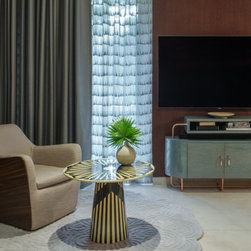 With an eclectic approach, the space has come together with the juxtaposition of modern lines with soft silhouettes to bring a stylish complexity and luxe balance to the bedrooms. The result yields the perfect blend of comfort and sophistication.