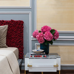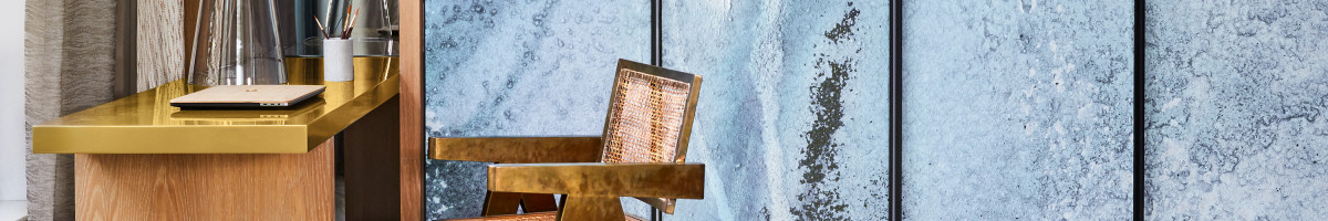 Overall, the form and colours share a sense of desire and pleasure. Mixed metals, silk, parchment and other artisanal elements add luxurious detail to this avante garde aesthetic. Lush neutrals and rich metallic detailing create a spirited vibe to this space.