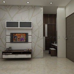 Bedroom designed with Simple TV Unit | Separate Dress Area | All Neutrals Theme |