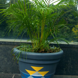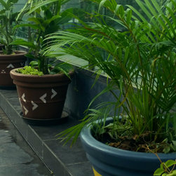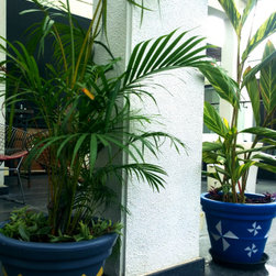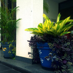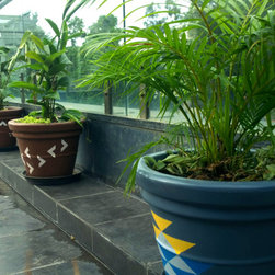 Renovation of existing pots with Patterns and Painting, Supply of softscape materials, Planting. On site planter arrangement