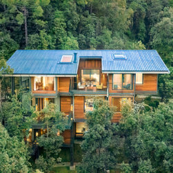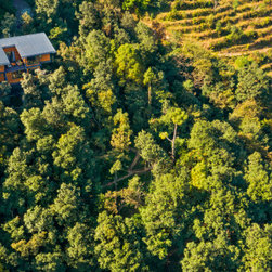 Land parcels were demarcated according to gradient, sun exposure, scenery, and tree locations. The construction methodology adopted lends flexibility to bend the structures according to the site contours. The villa is raised on stilts to allow the flow of natural water streams. Brush layering, a bio-engineering method, was used to stabilize the slopes further, while stone-built gully plugs allow rainwater to percolate into the ground.