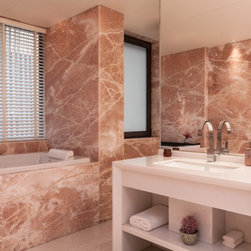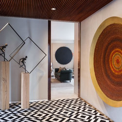 The subtle material palette, while continued in the interiors, is infused with luxury through craftsmanship and contrasted with strong patterns. A combination of stone, timber and metal create an ambience of understated opulence.