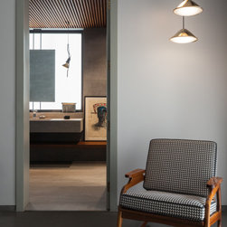 The challenge of designing twin houses in the proximity of a bustling highway translated into a program where a stark contemporary architectural language created the ideal shell for an interior, richly layered with handcrafted materials, bespoke furniture and curated elements.