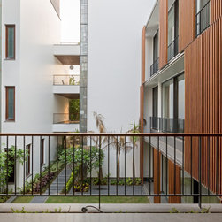 While both buildings remain distinct with individual access and layouts, these have been linked by bridges to connect the spaces and create shared areas such as an urban roof garden. This with the dense bamboo plantation at the outer ground level softens the edges of the buildings.