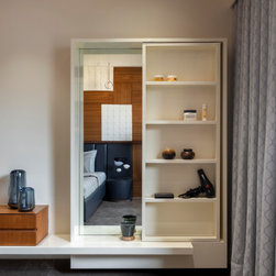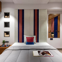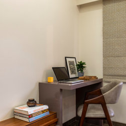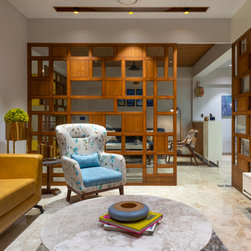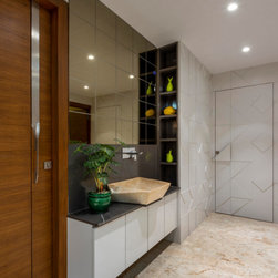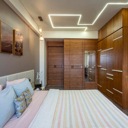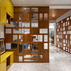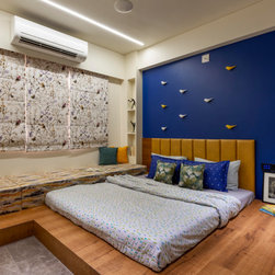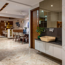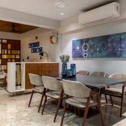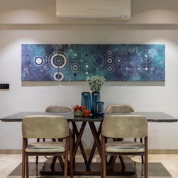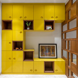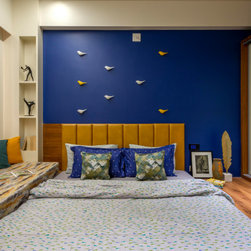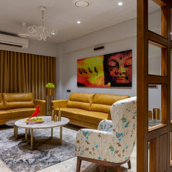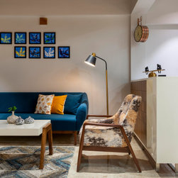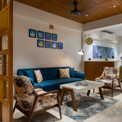We were perfectly able to blend the cubism theme along with the furniture and space requirements of the house. Also yellow being a vibrant color it was a crafty task to implement it with the surrounding spaces, not to make it too loud but just perfect enough to highlight some areas. This theme is breached by few shades of grey and blue along with different complimentary colors.