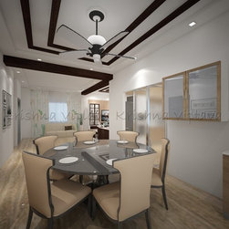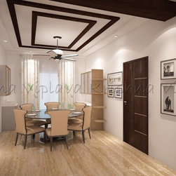 Round Dining Table | False Ceiling Design | Sand Themed Flooring |