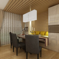 Dining designed with creative way and beautification | Hanging Pendant Light on the Table | Storage beside the Seating |