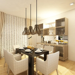 Dining Area with Crockery Unit | Dining Table with Hanging Pendant Lights |
