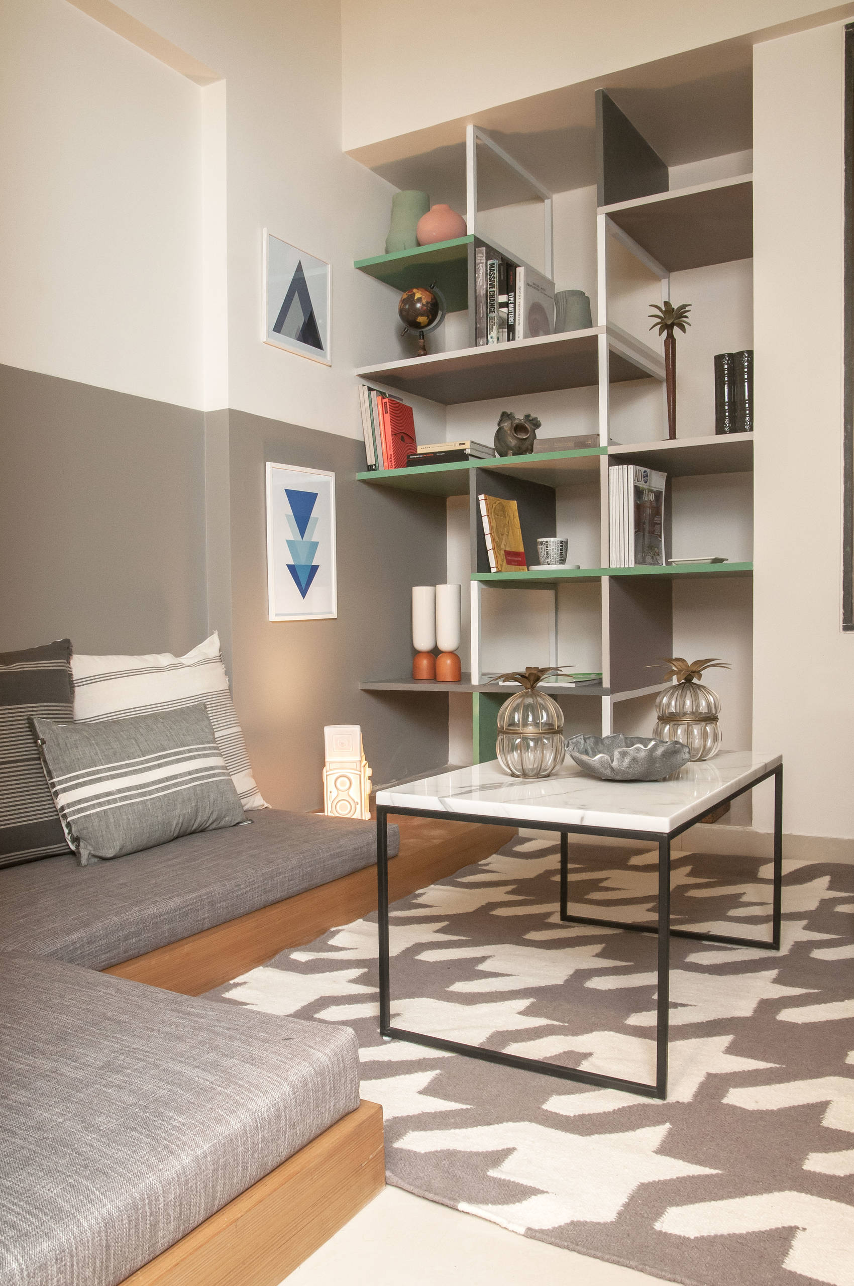 A one-bedroom flat was revamped to get more space, functionality and design. The designer ripped out nearly all of the walls and moved the position of the kitchen to the other side of the apartment. Doing this created an extra bedroom and bathroom, converting the 1-BHK into a 2-BHK. An open-plan living space thus emerged, embellished with a fresh, contemporary aesthetic and peppered with space-boosting geometric patterns.