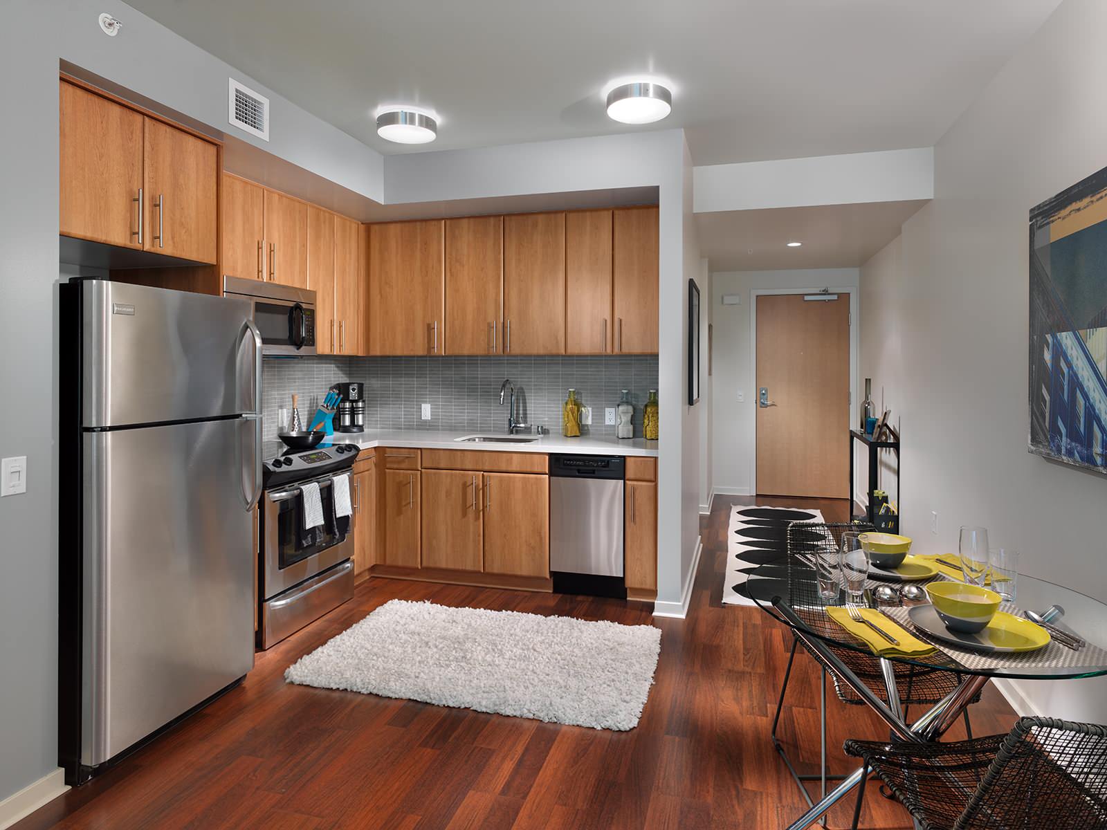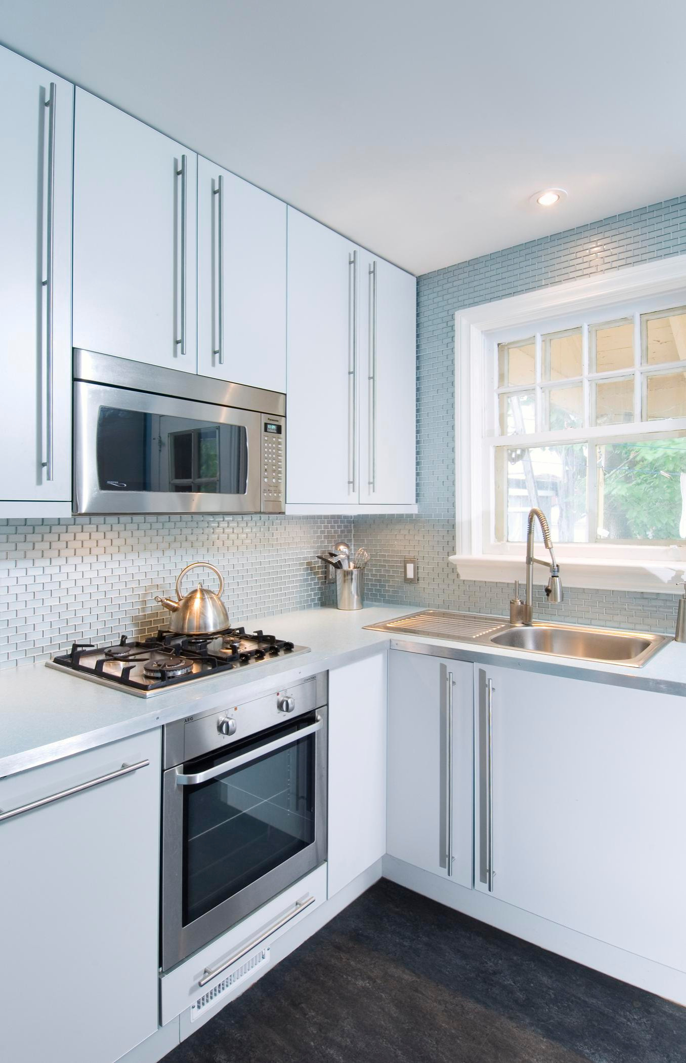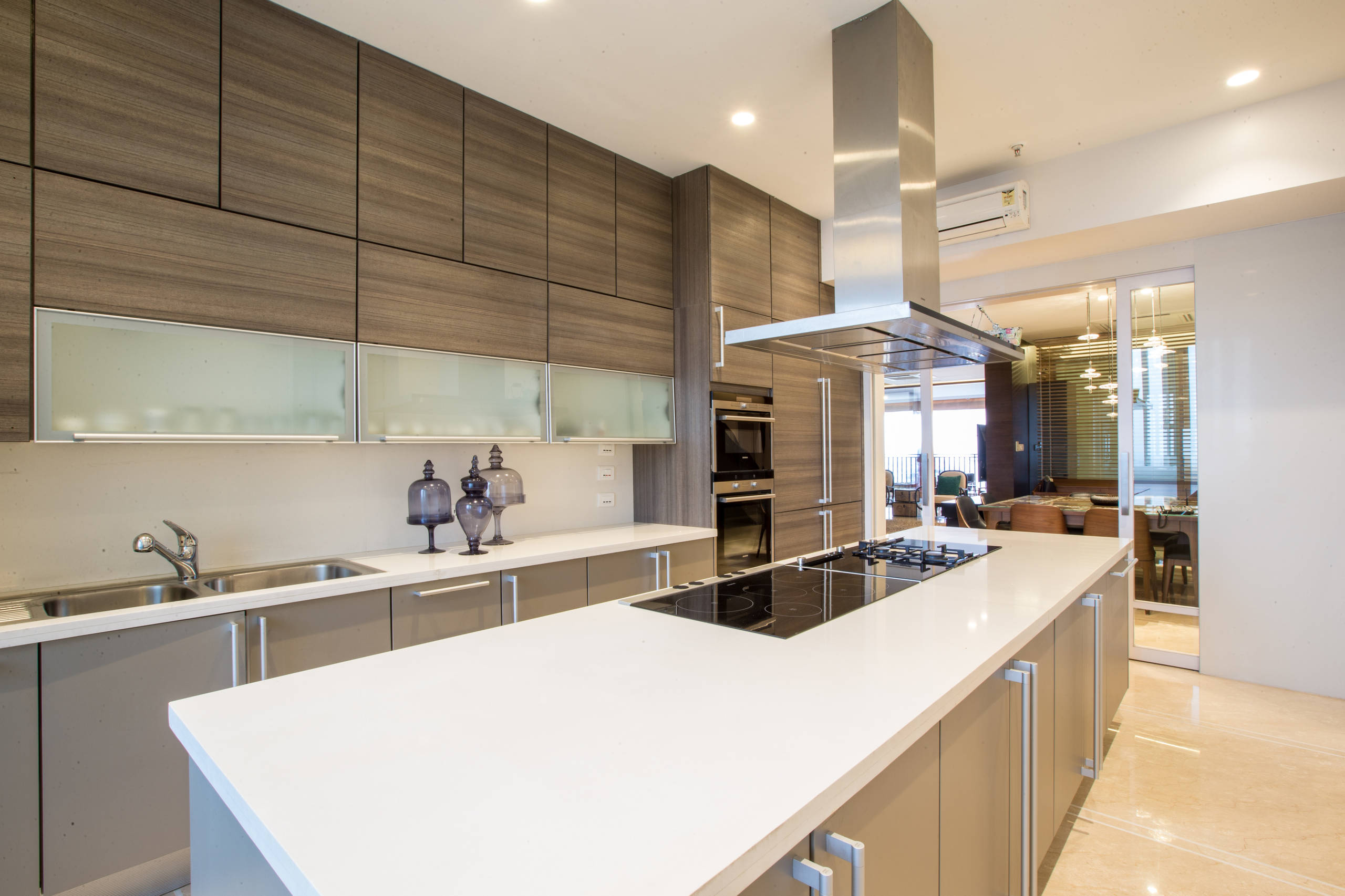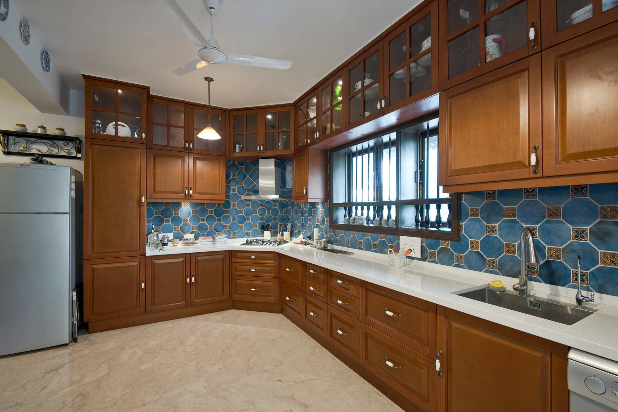 When planning the kitchen layout, ensure that the circulation-cum-working space between two countertops is at least 4 feet wide. Any less, and it will be too narrow, making it difficult for two people to work together.