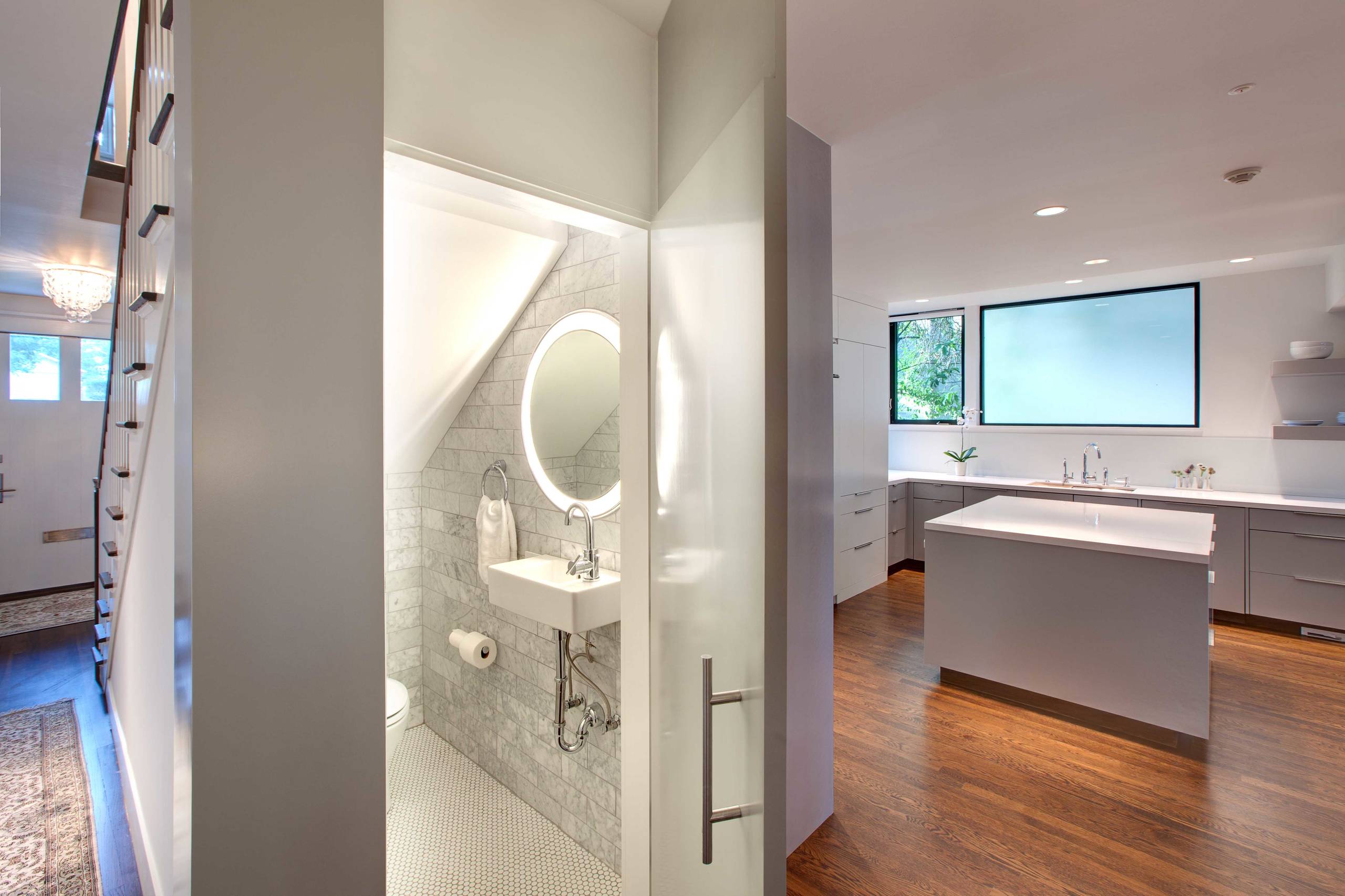 Why dedicate precious square footage in the house for a powder room elsewhere when there is this ideal area under the stairs?