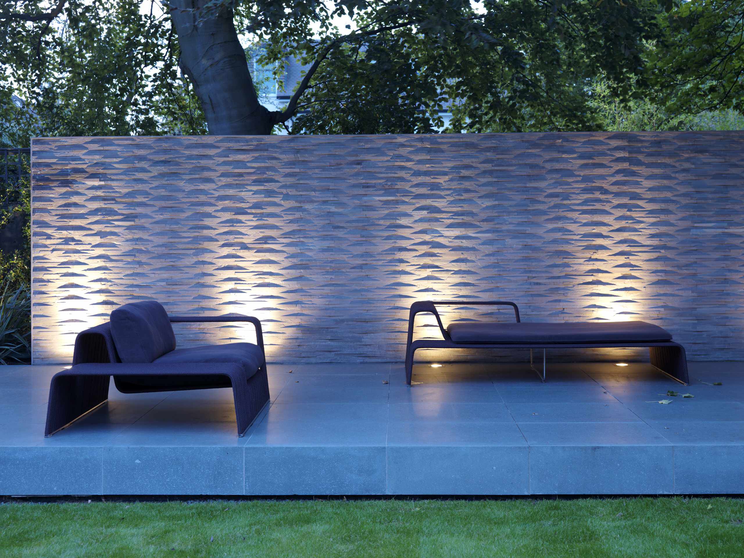 A large textured panel can be a great way to define a garden’s sitting or lounging area. And it adds privacy.
