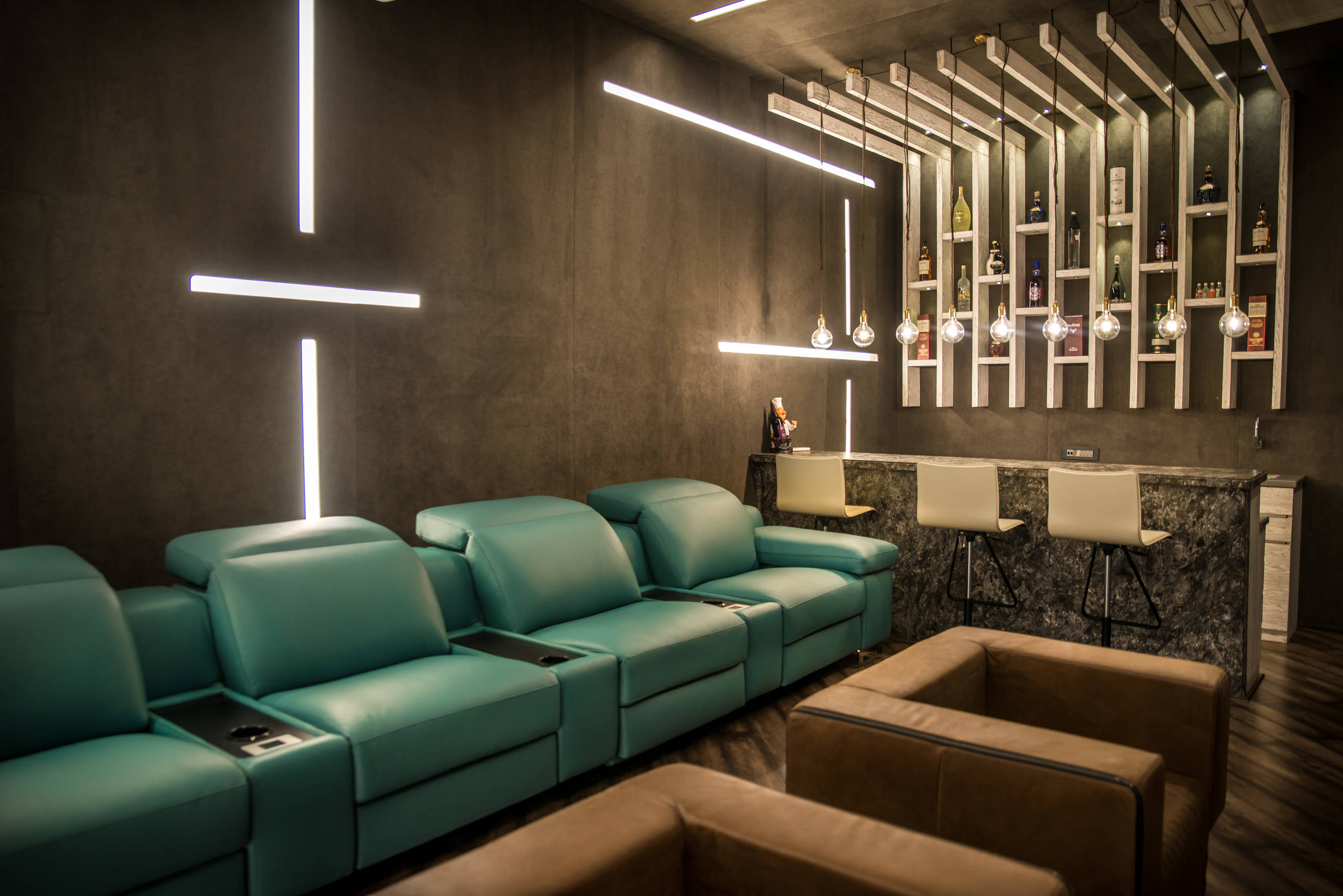 18. The strips of vertical and horizontal lights embellish the grey wall along with providing additional lighting. Installed within the wall, these blend with the wall’s surface while their shiny glow offsets the plastered finish of the wall.