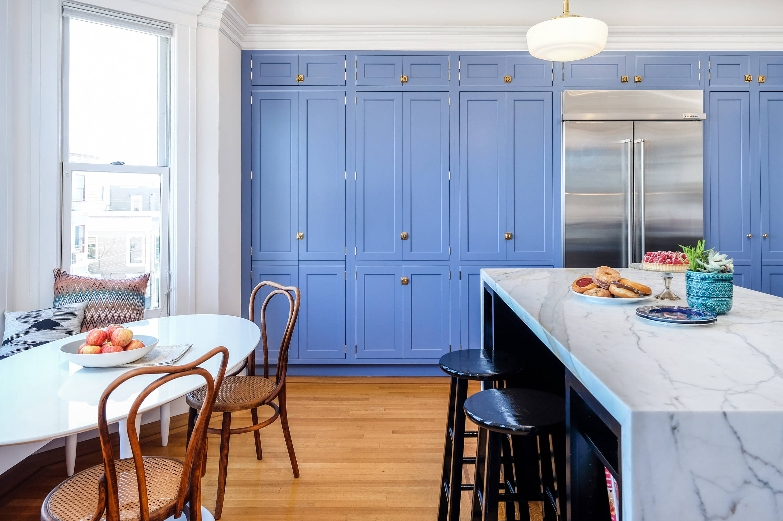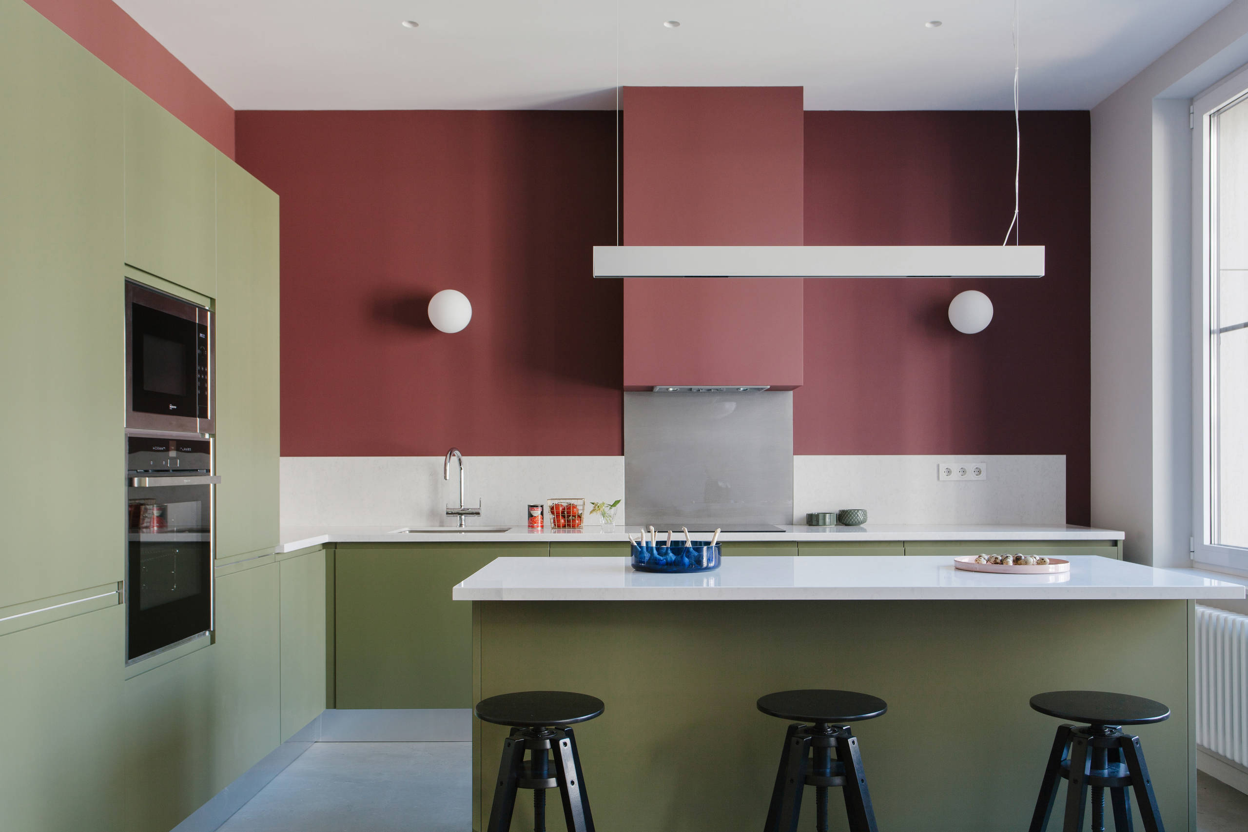 A milky plum, a sage green, a chalky blue, and a trio of red, yellow and green… your kitchen simply does not have to be plain white or bold black to look good. Here are 24 kitchens that show how colour can maketh the space. Enjoy.