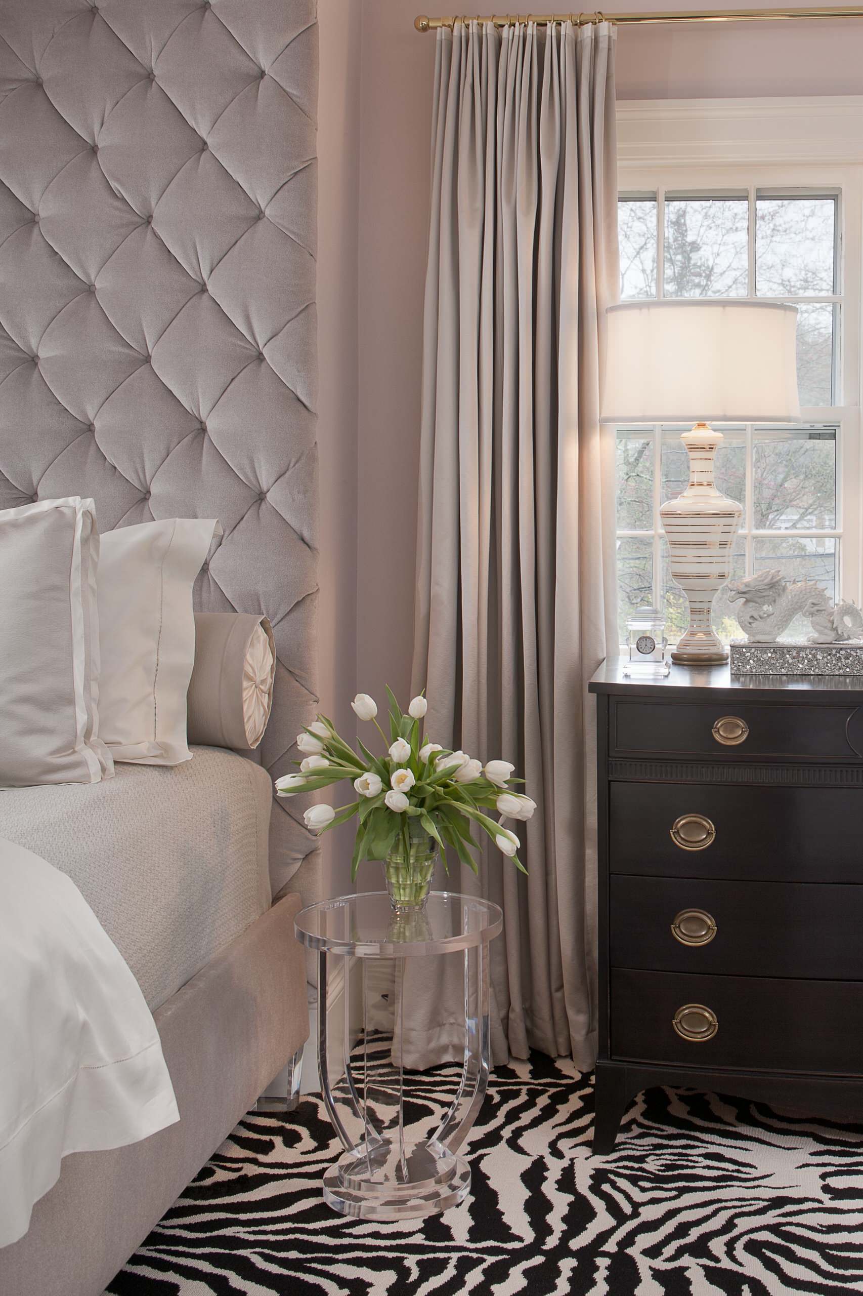 Most hotel rooms have sleek side tables on either side of the bed – these usually have a writing pad, a bedside lamp or a beautiful flower arrangement placed there. If the area around your bed has some extra space, consider adding a side table and a writing desk here, with a comfortable chair. If you have a television in the room, you could hide it inside a beautiful armoire or cabinet. This cabinet could also hold a small bar for a private treat.