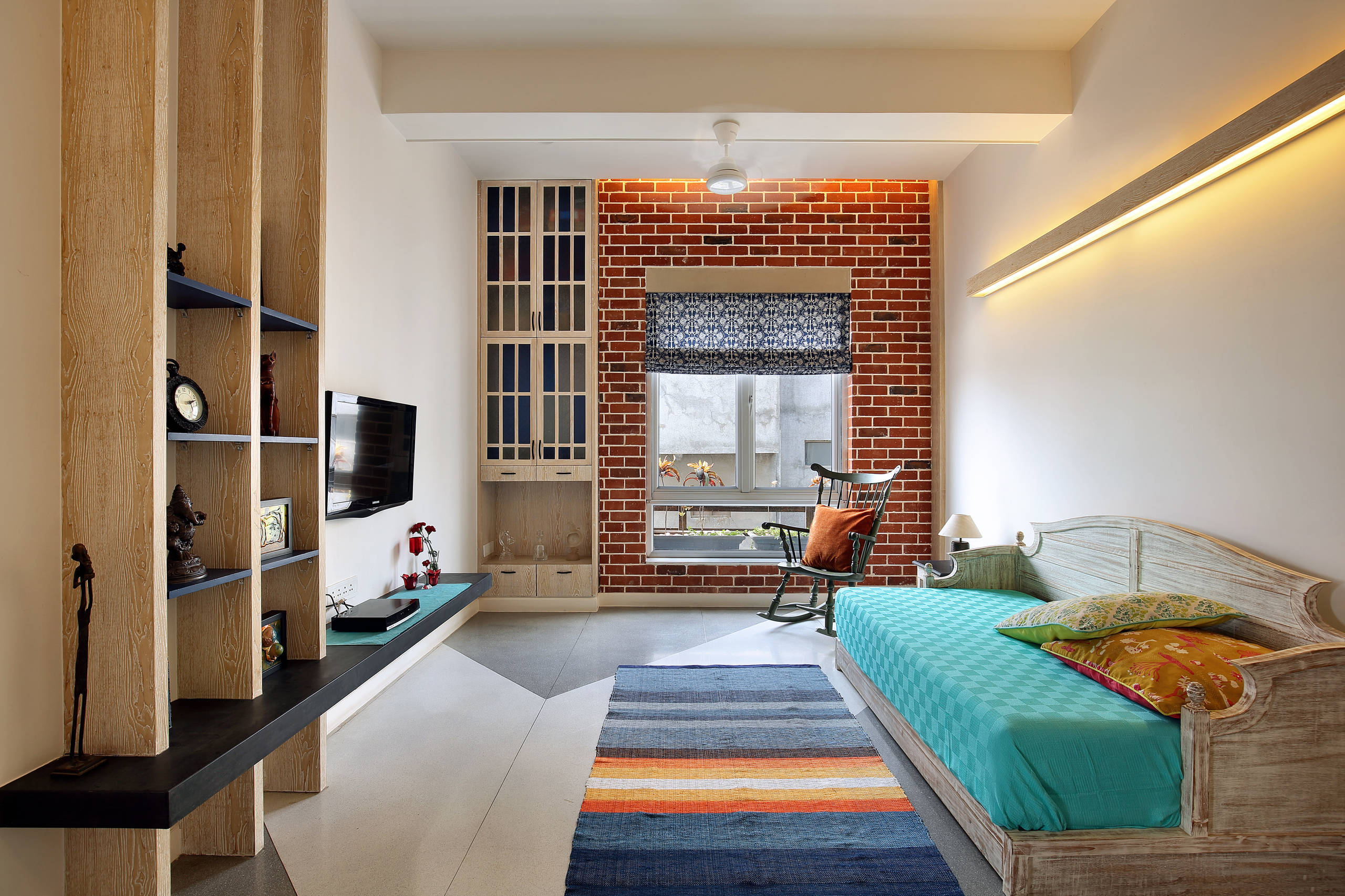 3. The eclectic home by Studio Vistara is a unique example of a contemporary Indian home where the ‘Indianness’ comes across through its details. While the overall style of the house is modern, with an open-plan living room and other such larger design aspects, once we take a closer look, the house makes acute references to Indian roots with soft furnishings and traditional decor elements. Carpets, pillows, upholstery, bed linen and table runners all bring together Indian prints and colours, while certain floor accents and furniture pieces also have an exquisite Indian flavour.