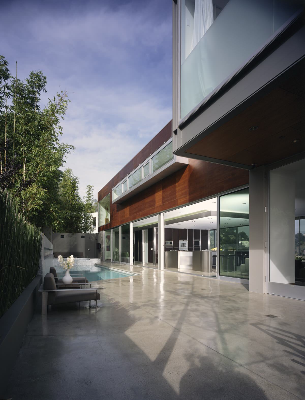 In this example, just see how polished concrete flooring is used to create a seamless flooring between the indoors and the outdoors.