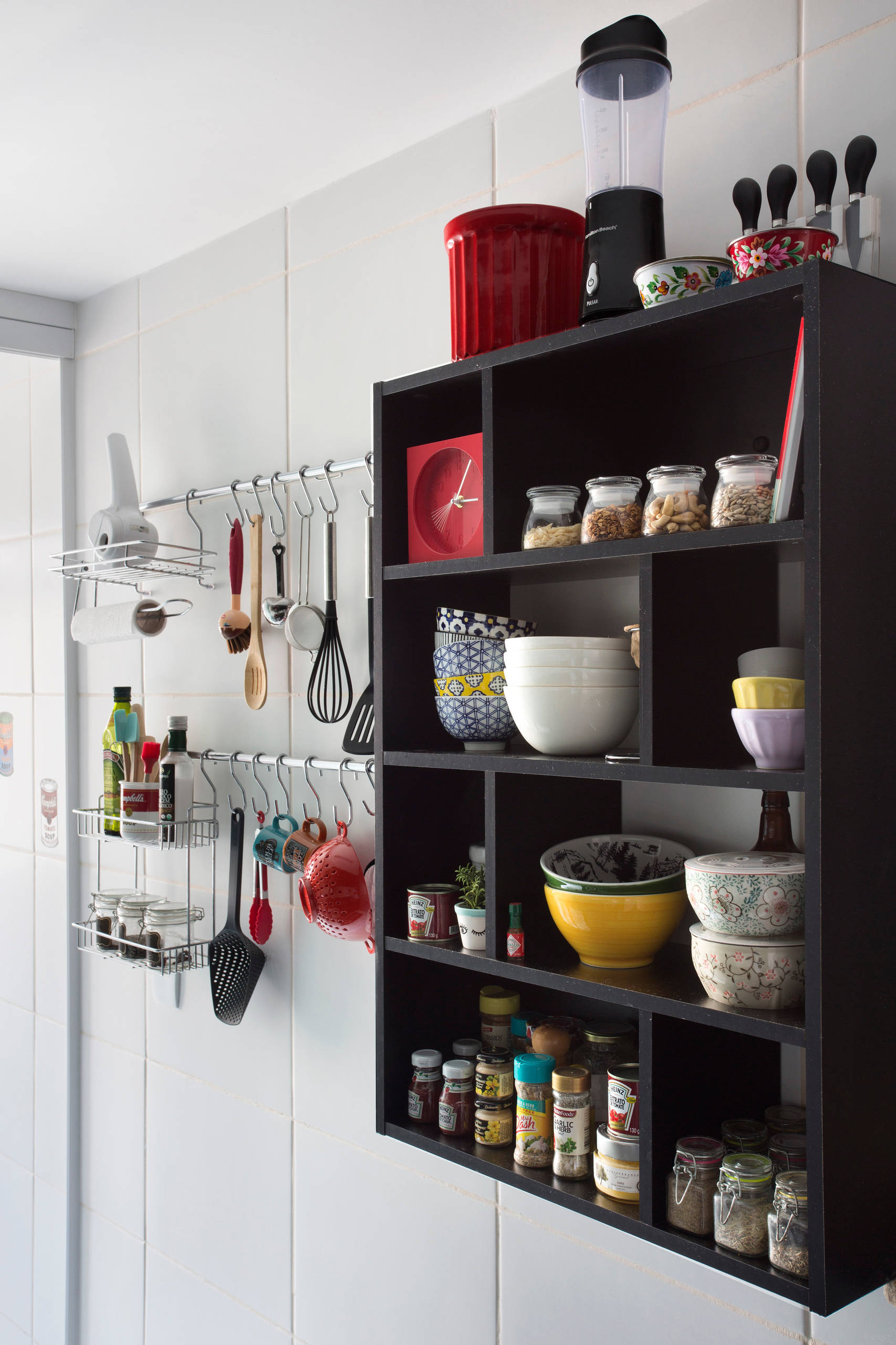 Decide how to store your utensils. Depending on your kitchen layout and set up, different storage solutions work for different families. We hang our utensils on a rail near the stove and find this easy as we can always see what we have. An added bonus is that it stops us accumulating too many utensils, which can look cluttered.