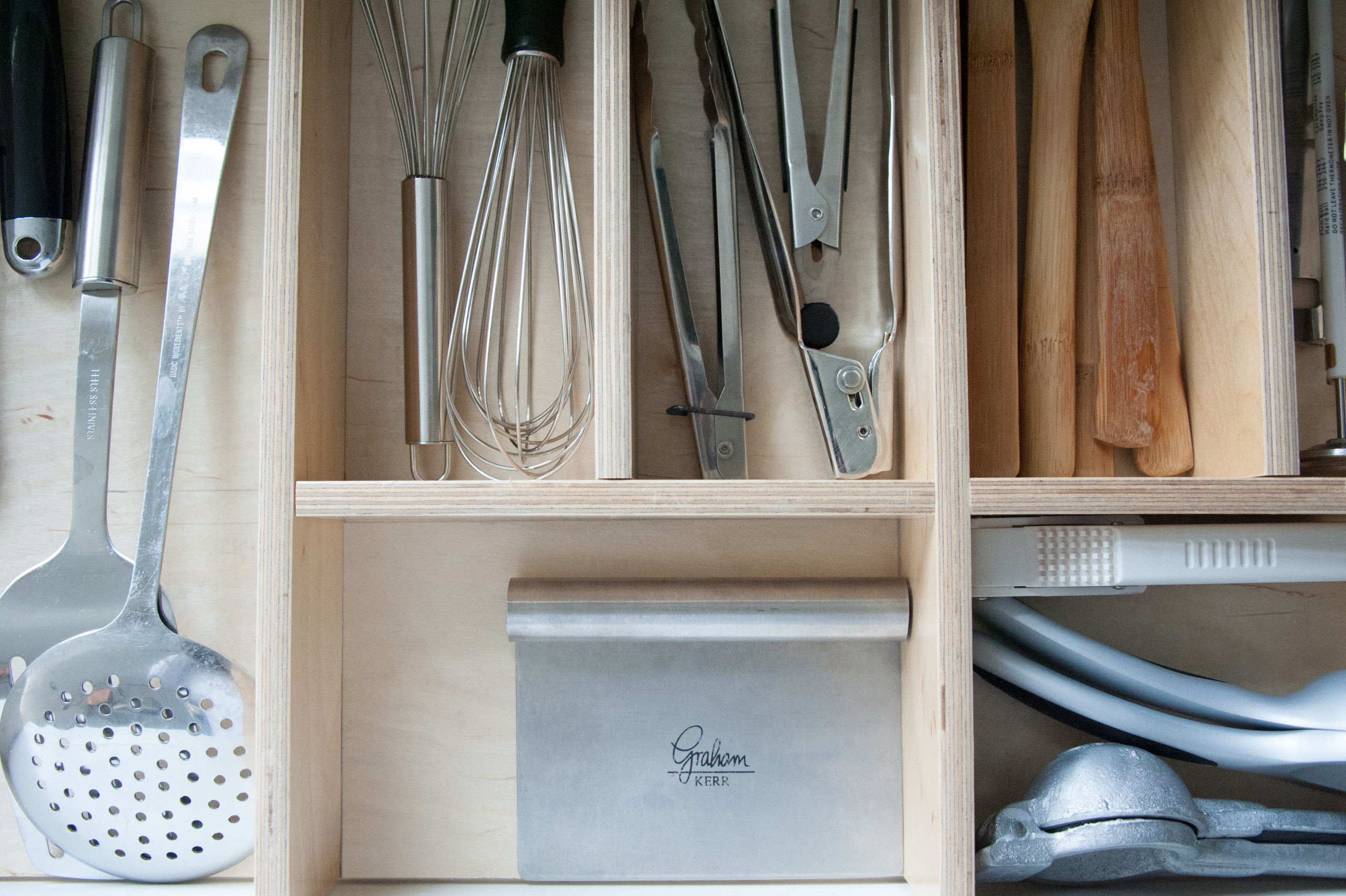 If you’re going with kitchen drawer storage, I suggest limiting your utensil collection to just one drawer and setting that as a natural limit. I find that if you’ve gone through the above five steps by the time you get to this step, it’s not too complicated.