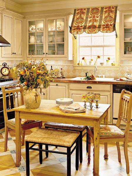 See here how the windows are crowned by pleated valances. The upholstered top connects the valance with the overall theme of the fabric. Hang your valance alone or pair it up with curtains; it will bring a very definitive character to your home.
