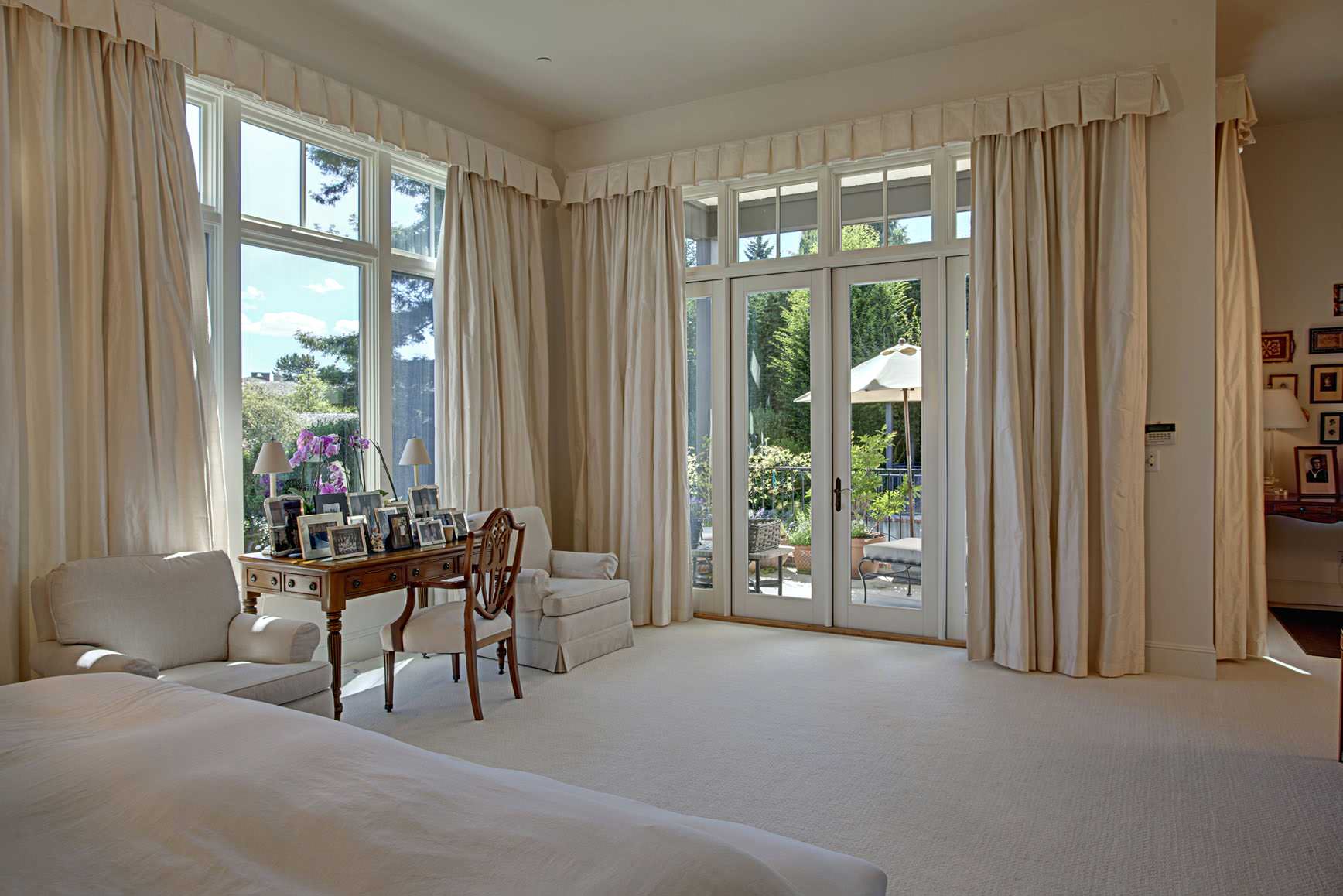 Match the cornice with the headboard, the rugs and upholstery to let the eye flow seamlessly over the room.