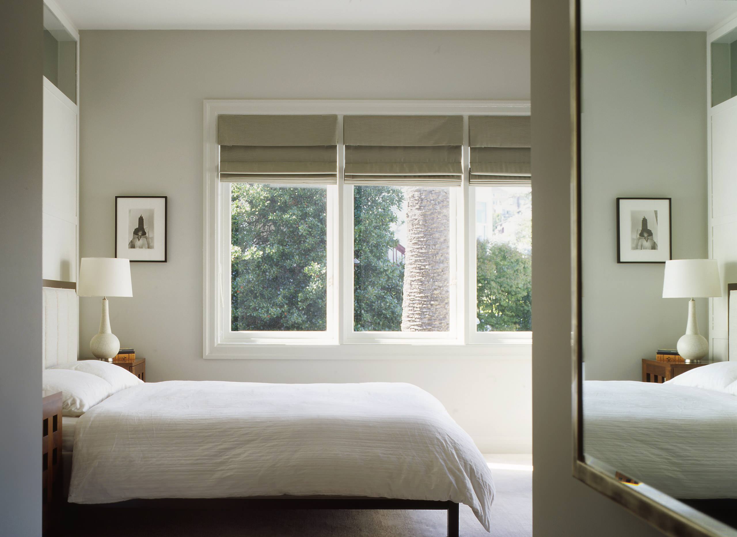 While this might not be feasible in all climates, connecting a room with the outdoors is a great way to make the space feel larger and admit more natural light. If your bedroom is on the ground floor (or is on the second story and has an adjacent terrace), adding a set of French doors can instantly increase visual space.