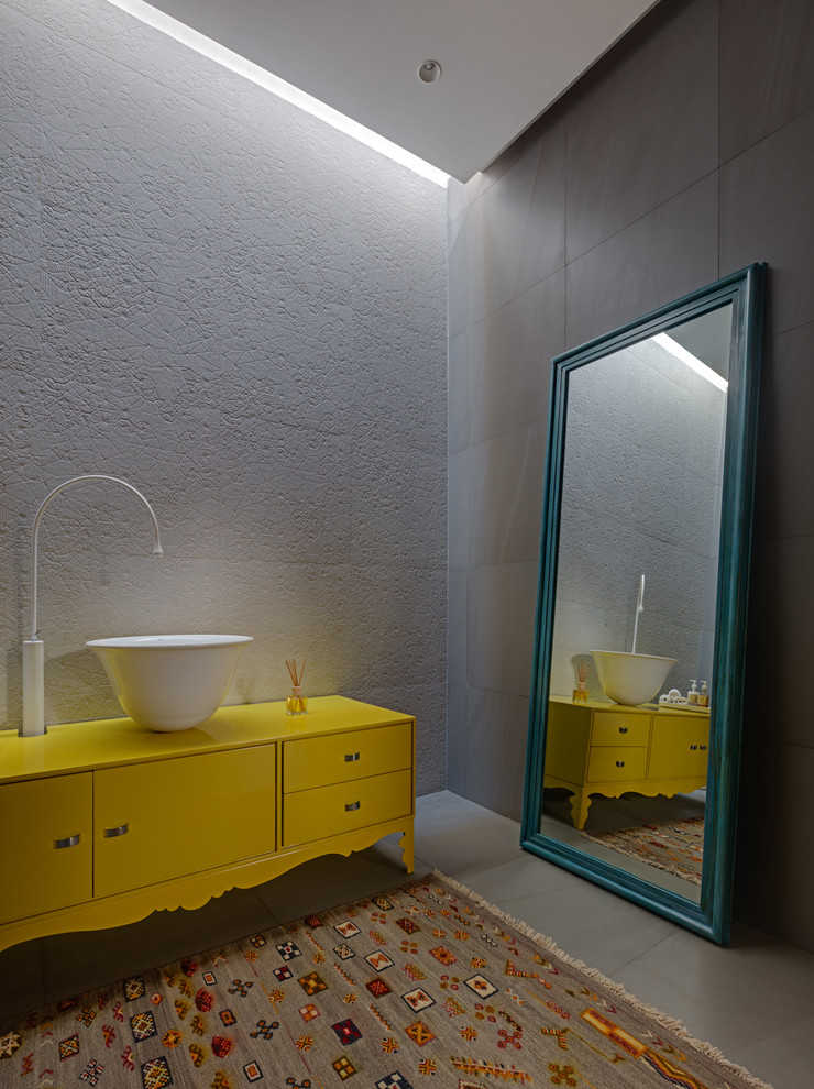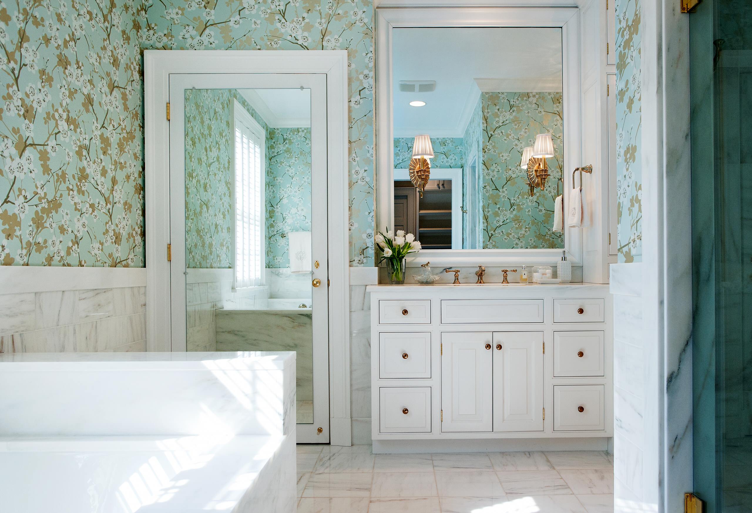 Tip: You can also use an oversized mirror in a tiny area to make it look doubly spacious. Take a look at this powder room, with the tall mirror that not only acts as a decorative feature but also a functional one by creating a perspective-boosting illusion.
