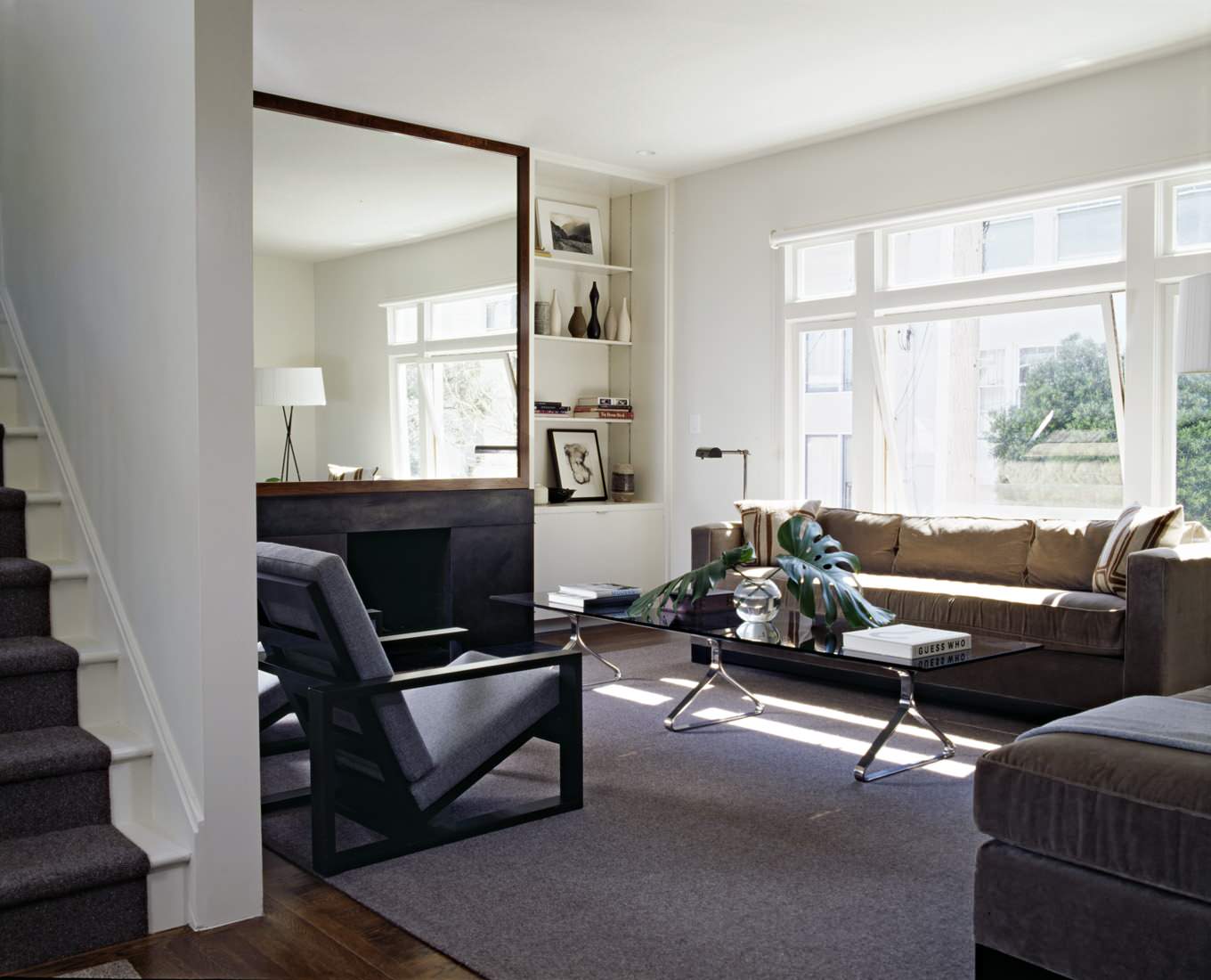 A narrow, winding staircase can be made to look wider and longer with mirrors. Just place one on the opposite wall and watch the magic unfold.