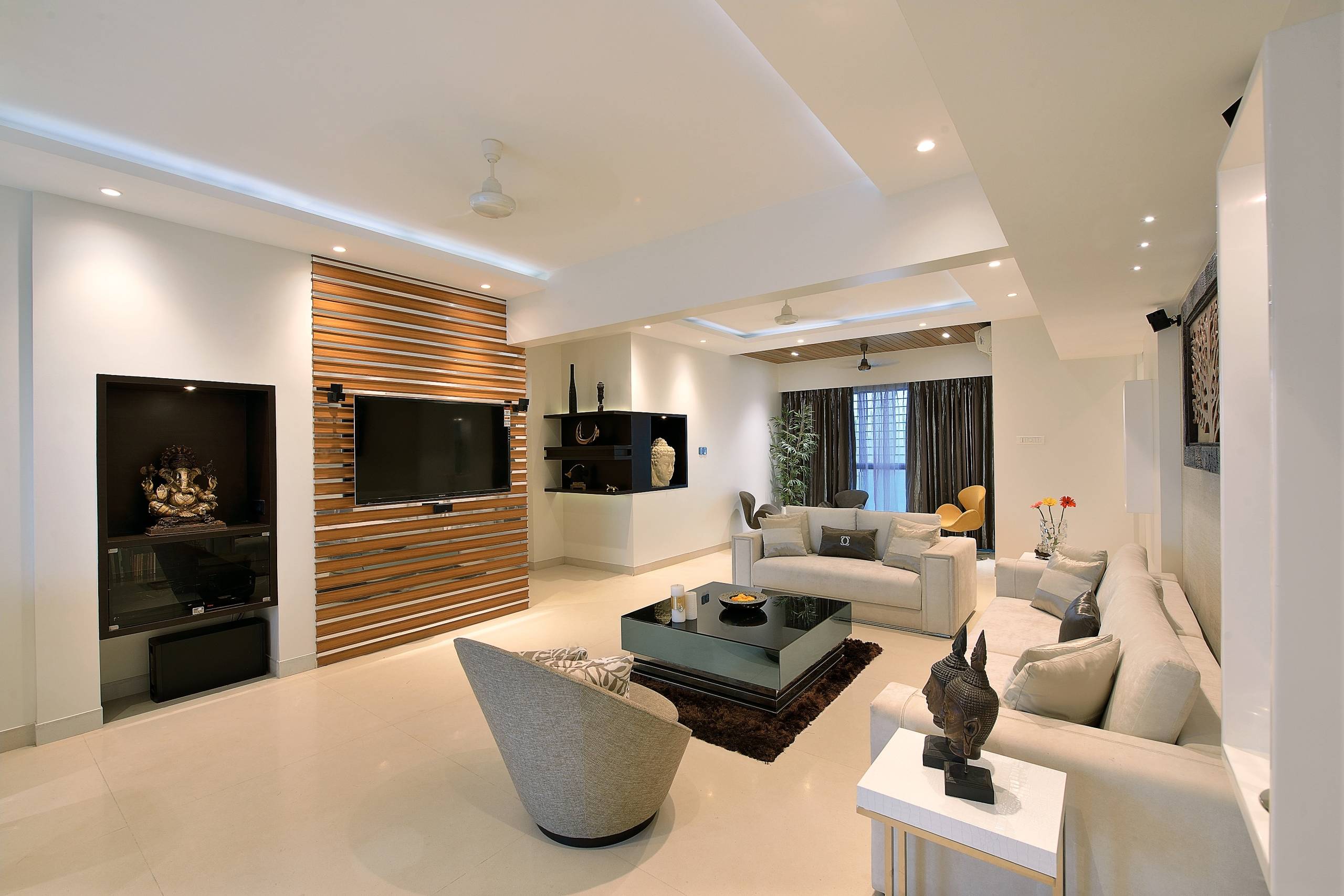 Introduce wooden battens on a high ceiling; they enhance the beauty of the space and can make the room seem more detailed and proportionate. In this rectangular room, wooden battens are fixed lengthwise to make the room seem longer visually.