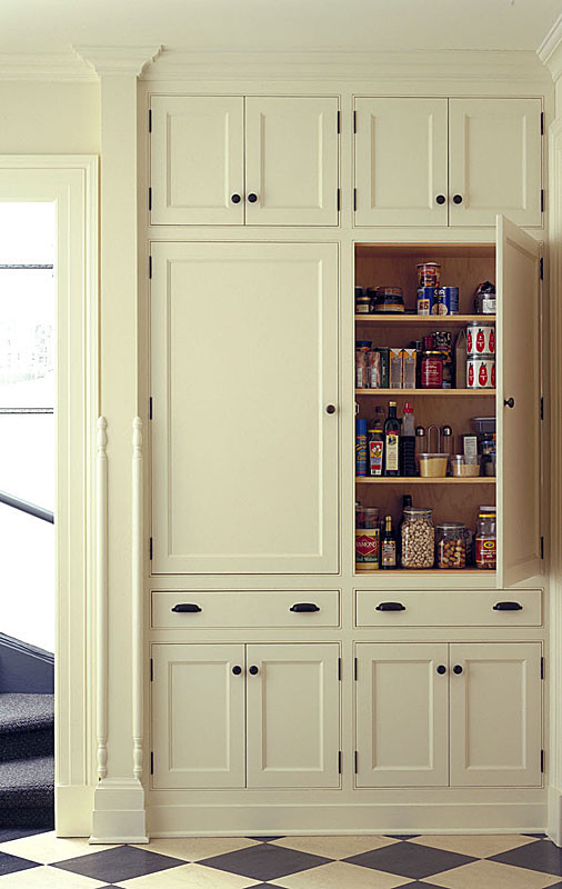 Instead of wall cabinets, I like to install shallow floor-to-ceiling pantries. They’re an efficient use of an interior wall, where you can’t have a window anyway. By limiting the depth to just 25 to 23 centimetres, you are forced to line up your dry goods in a single row, making everything easier to find.