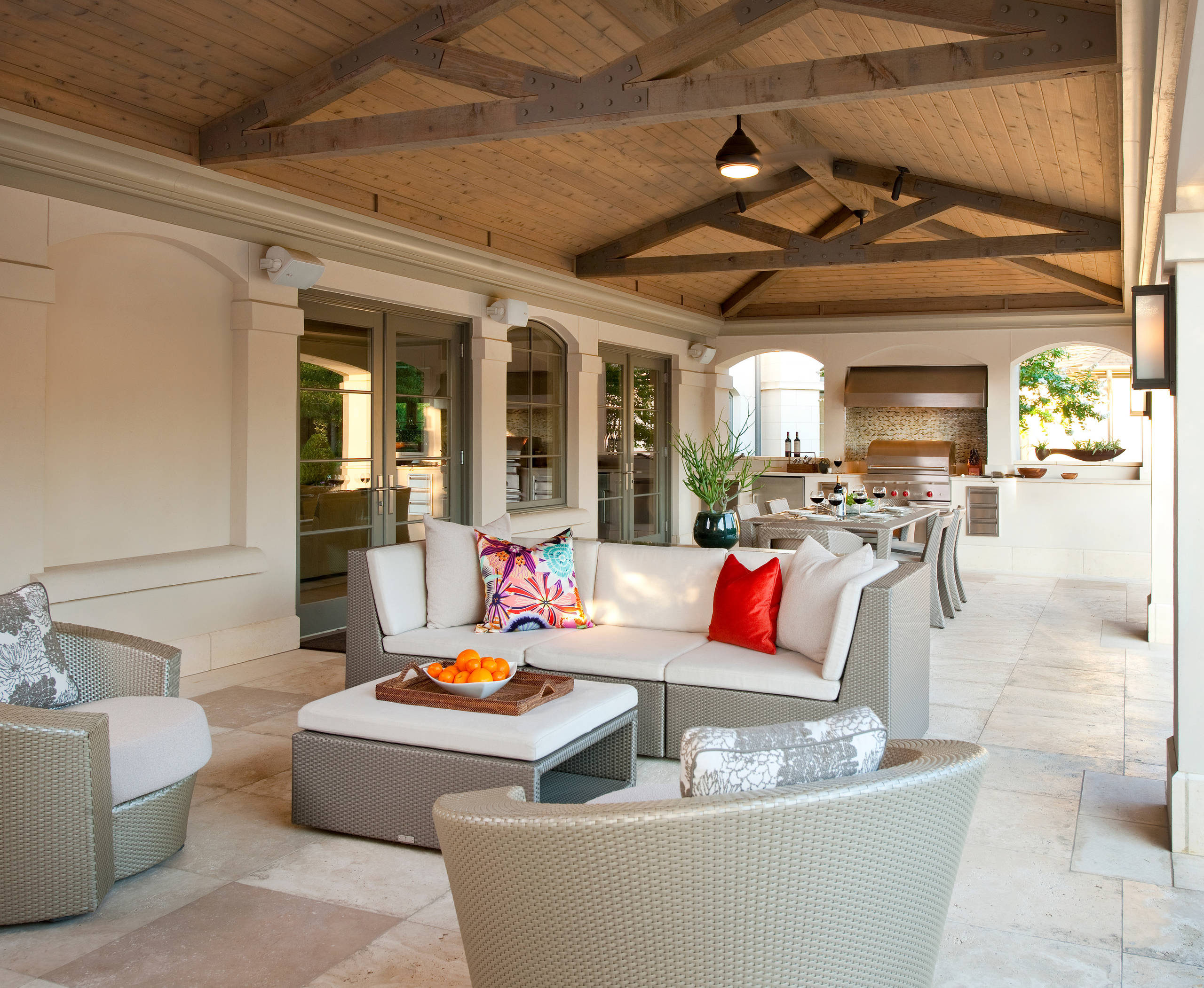 Outdoor spaces are meant for relaxation, so make comfort a priority when choosing your sofa. Throw in a few extra cushions to make it more cosy, and while you’re at it, remember to look for fabric that resists mildew and fading.