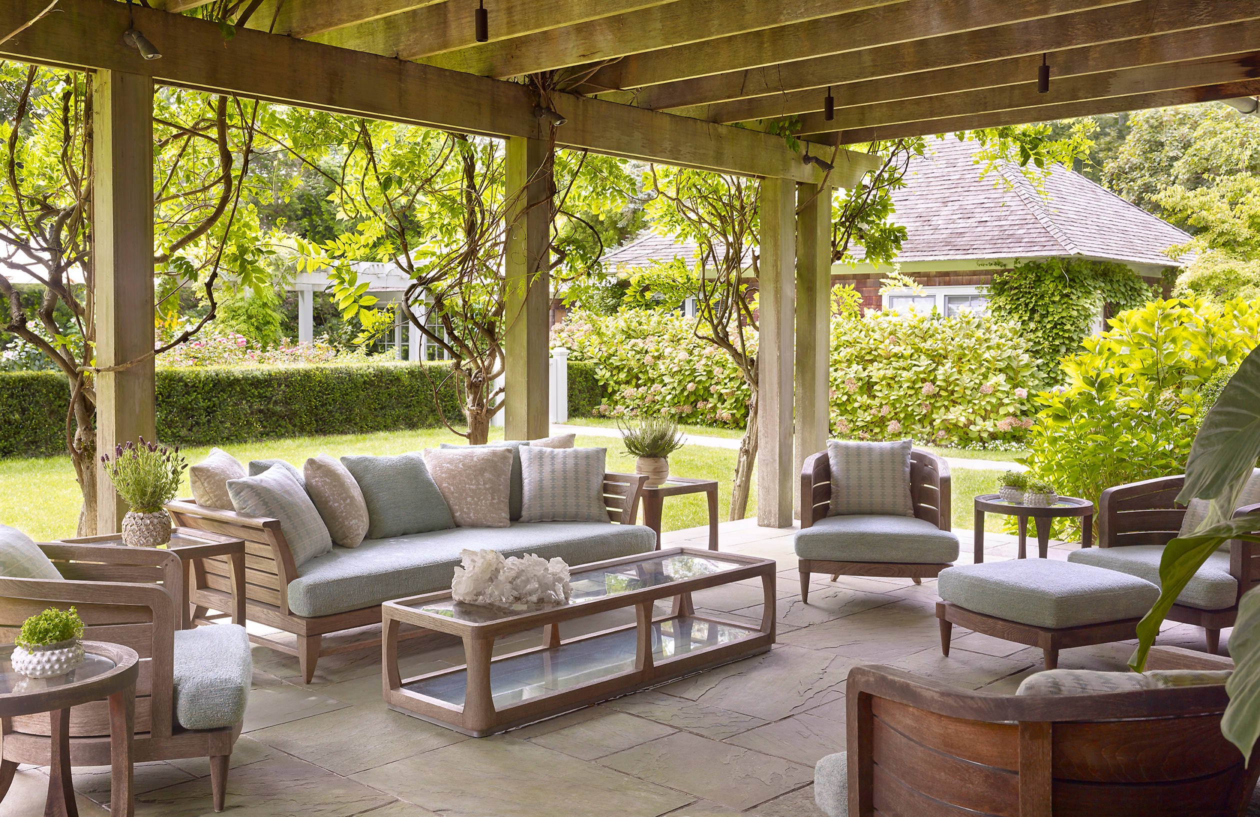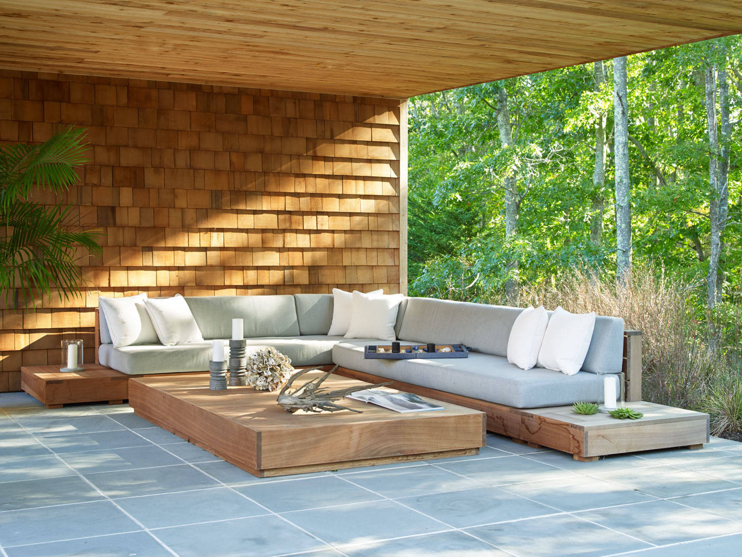 “Today people are demanding more comfort from their outdoor sofas. The aesthetic is becoming more ‘indoor’ as they seek to blend indoor and outdoor patio spaces together,” says Anthony Spon-Smith, executive director at Coco Republic. “Spaces need to have an ‘open’ feeling – and this is achieved through open weaves or thinner frames, so they appear aesthetically transparent and don’t ‘interrupt’ the space.