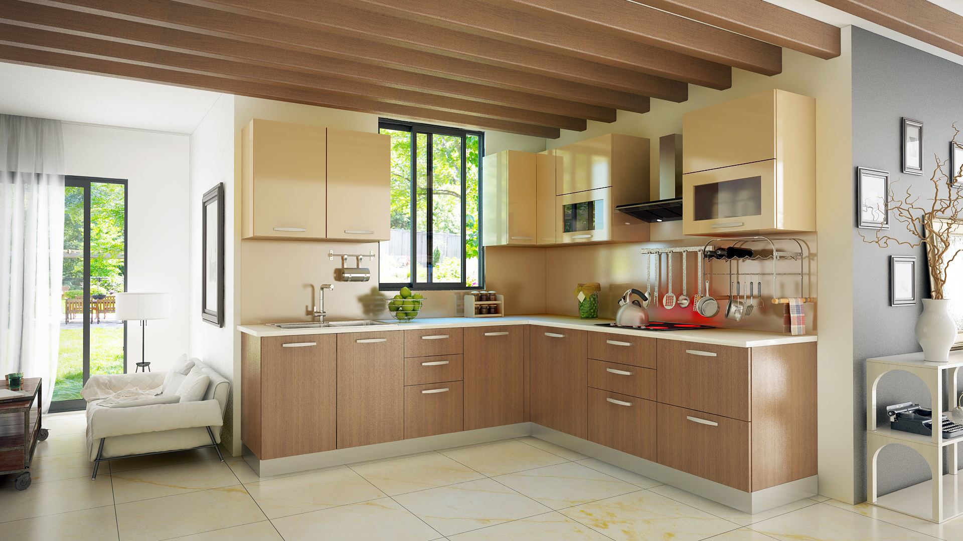 Pros: L-shaped cooking space enhance the open-kitchen cooking experience, and those who like to keep a conversation going love this kitchen type. L-shaped kitchens are ergonomic for single users. This layout is the most island-friendly. You can install a permanent island, bring in a temporary counter on wheels, or bring your dining table closer, as and when the occasion demands.