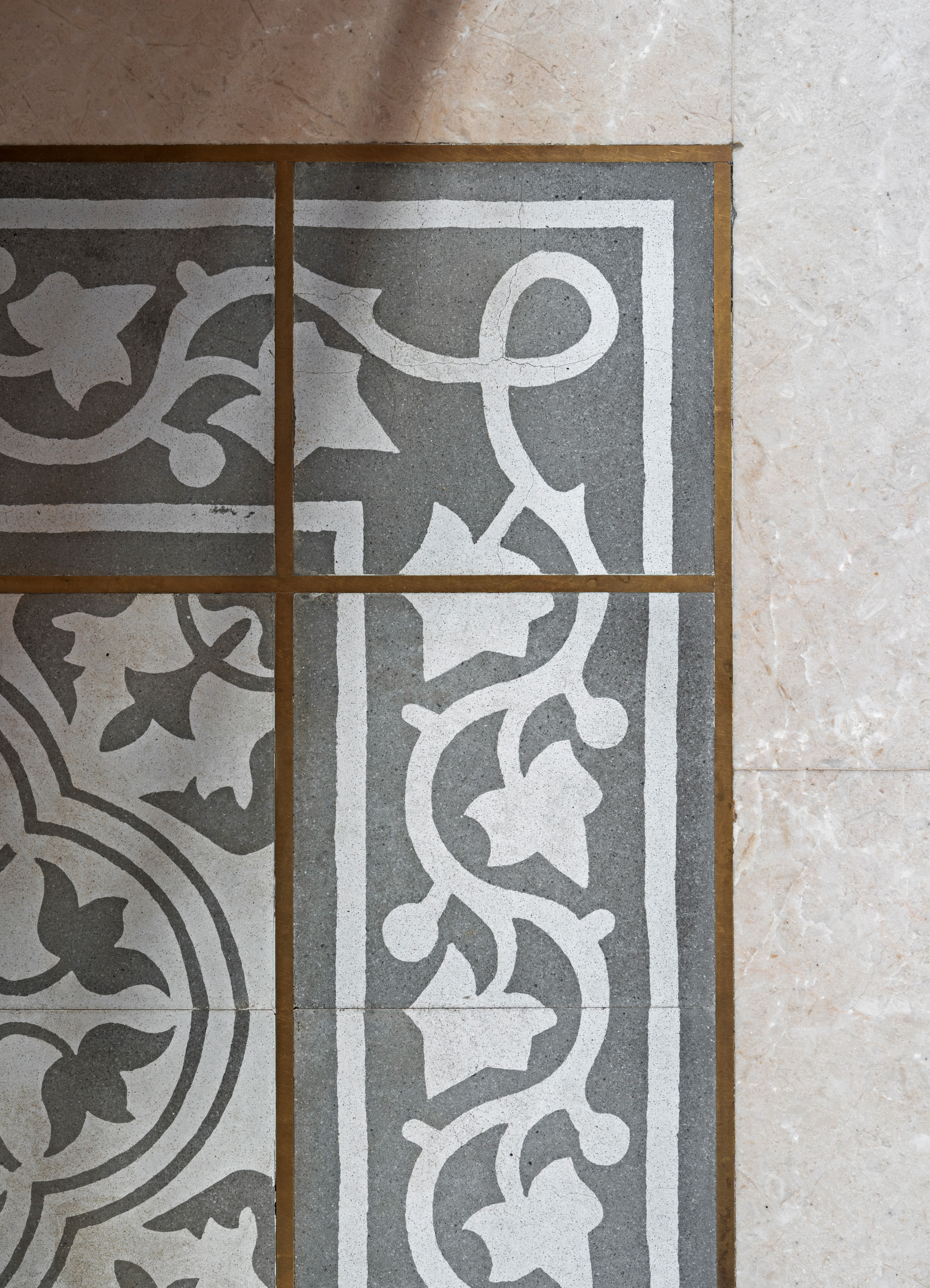 “The flooring complements the earthy theme throughout the house, with brass inlay to add a dash of luxury to the flooring,” adds Patel.