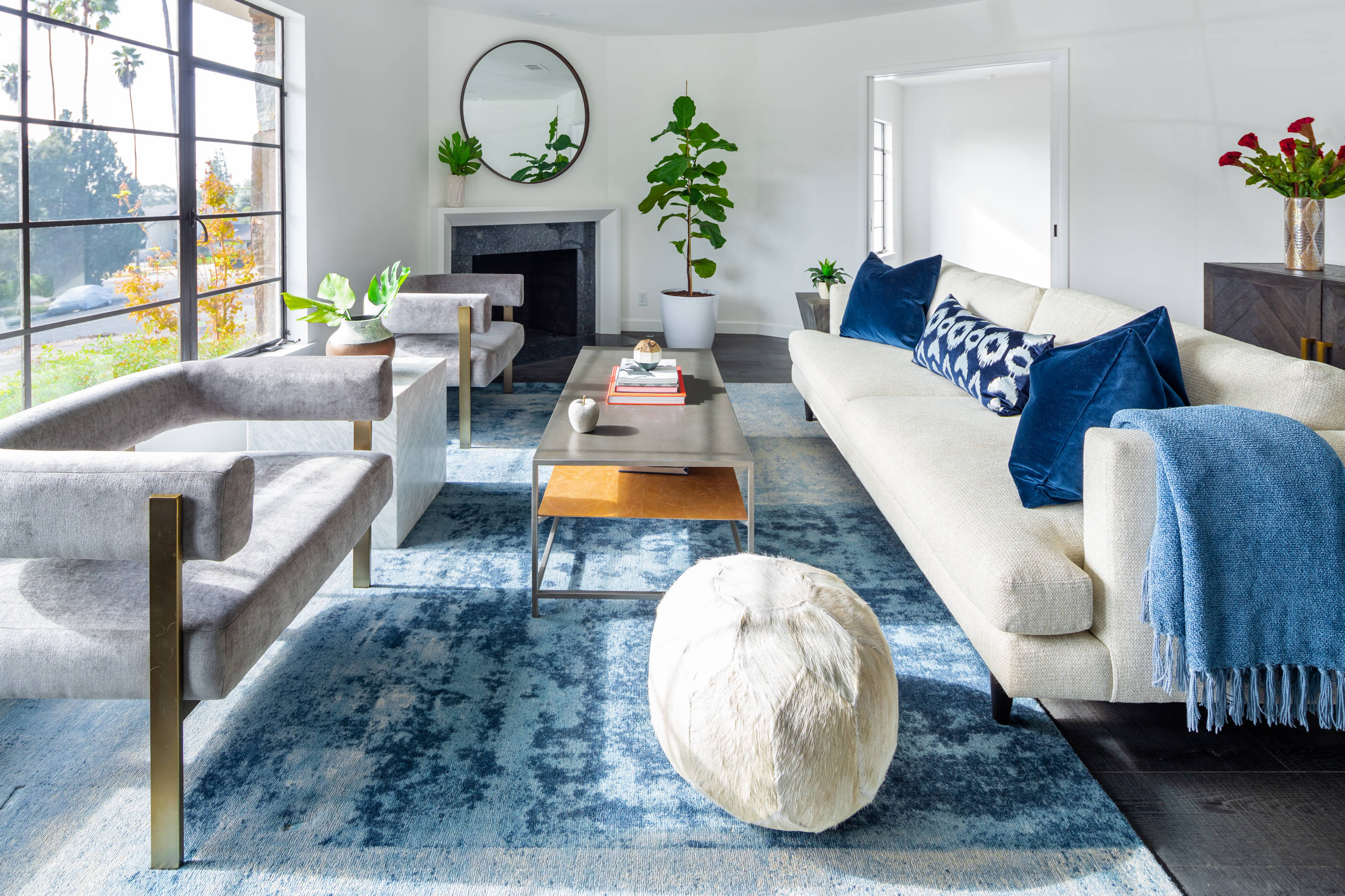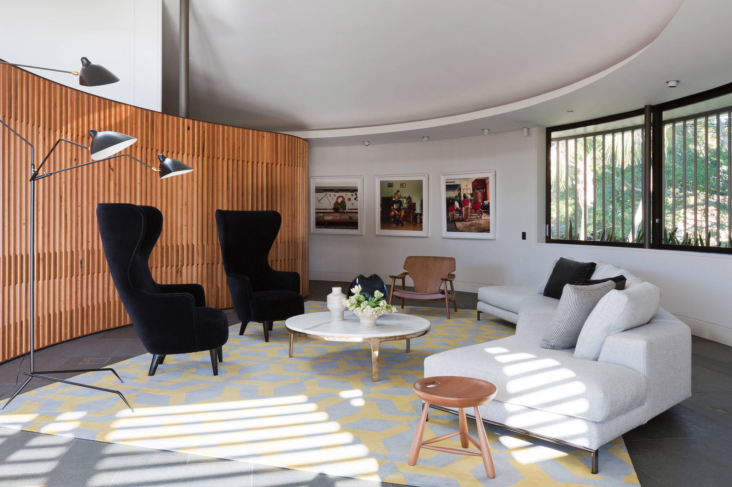 Why we love it: There’s something seductive about architectural curves… until you try to decorate the room with square or rectangular furniture. If you’re blessed with undulating walls or features like these, it may be time for a circular rug and a custom curved sofa to enter your life… or living room.