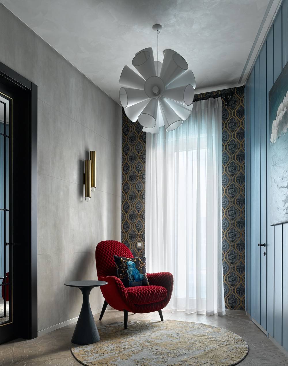 Why we love it: Sometimes the tight end of acute angles leaves you with limited options to create a room with purpose. In these cases, consider embracing the spatial restrictions rather than resisting them. Can’t make something functional out of a teeny, challenging corner? Dress it up as a nook instead and site it with a chair, small side table, statement pendant and some jazzy wallpaper.