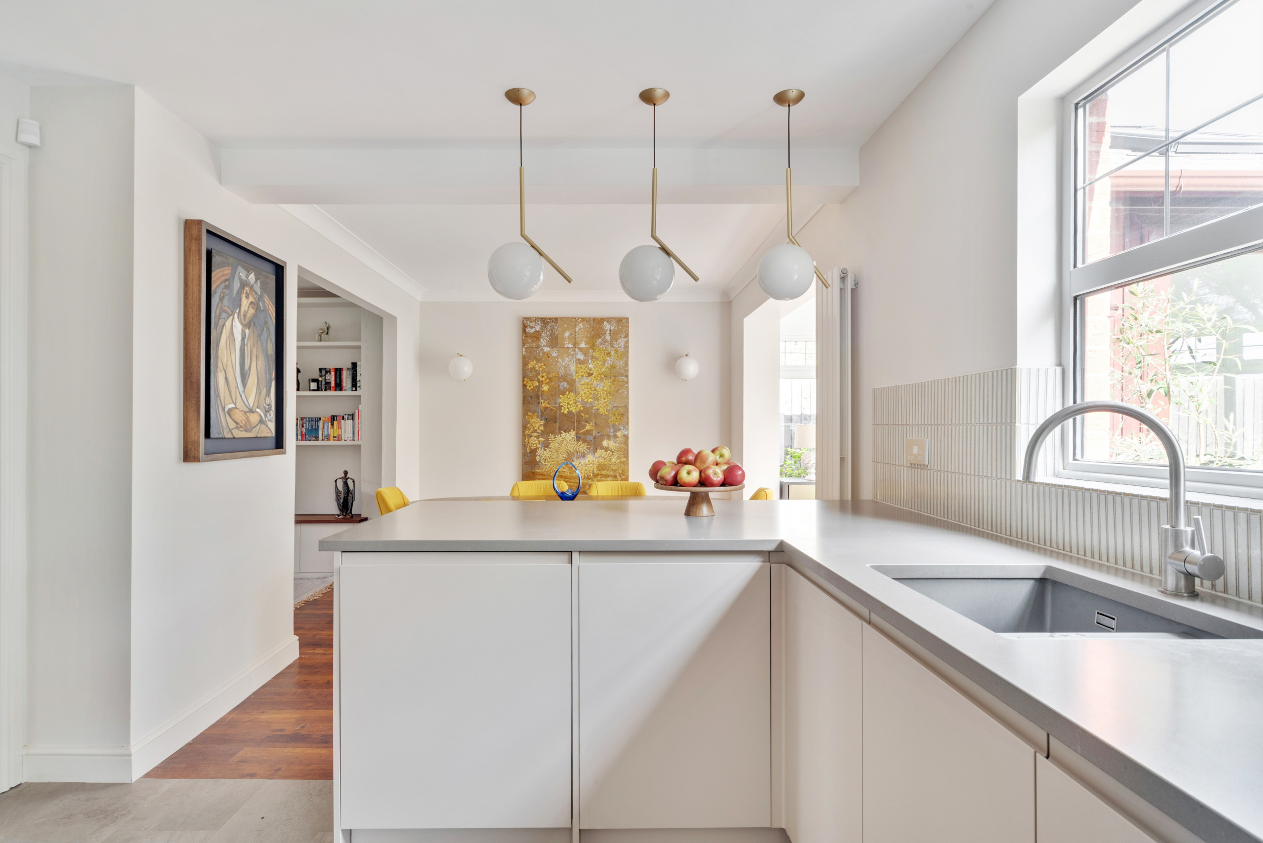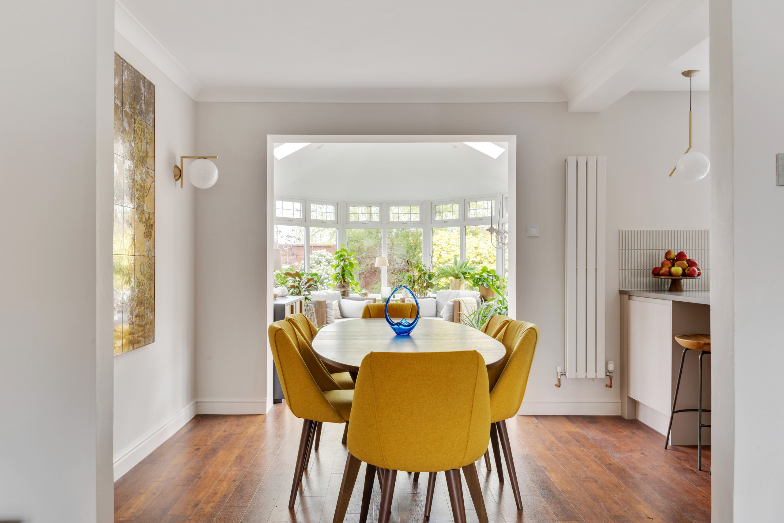 Moving the table has freed up the conservatory. “There’s a really nice connection to the garden in there, so that’s become a coffee and chat space, or somewhere the owners can sit and read,” Mia says. “Now, all the spaces are being used.”