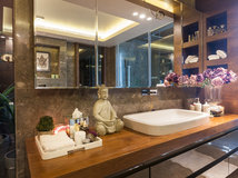 Get ready for your close-up in a bath that's a sanctuary with task, accent, decorative and ambient lighting