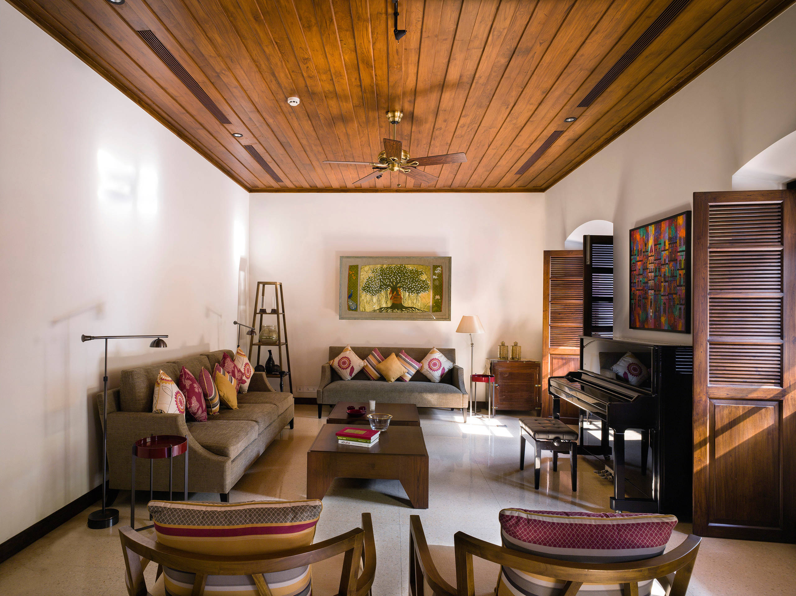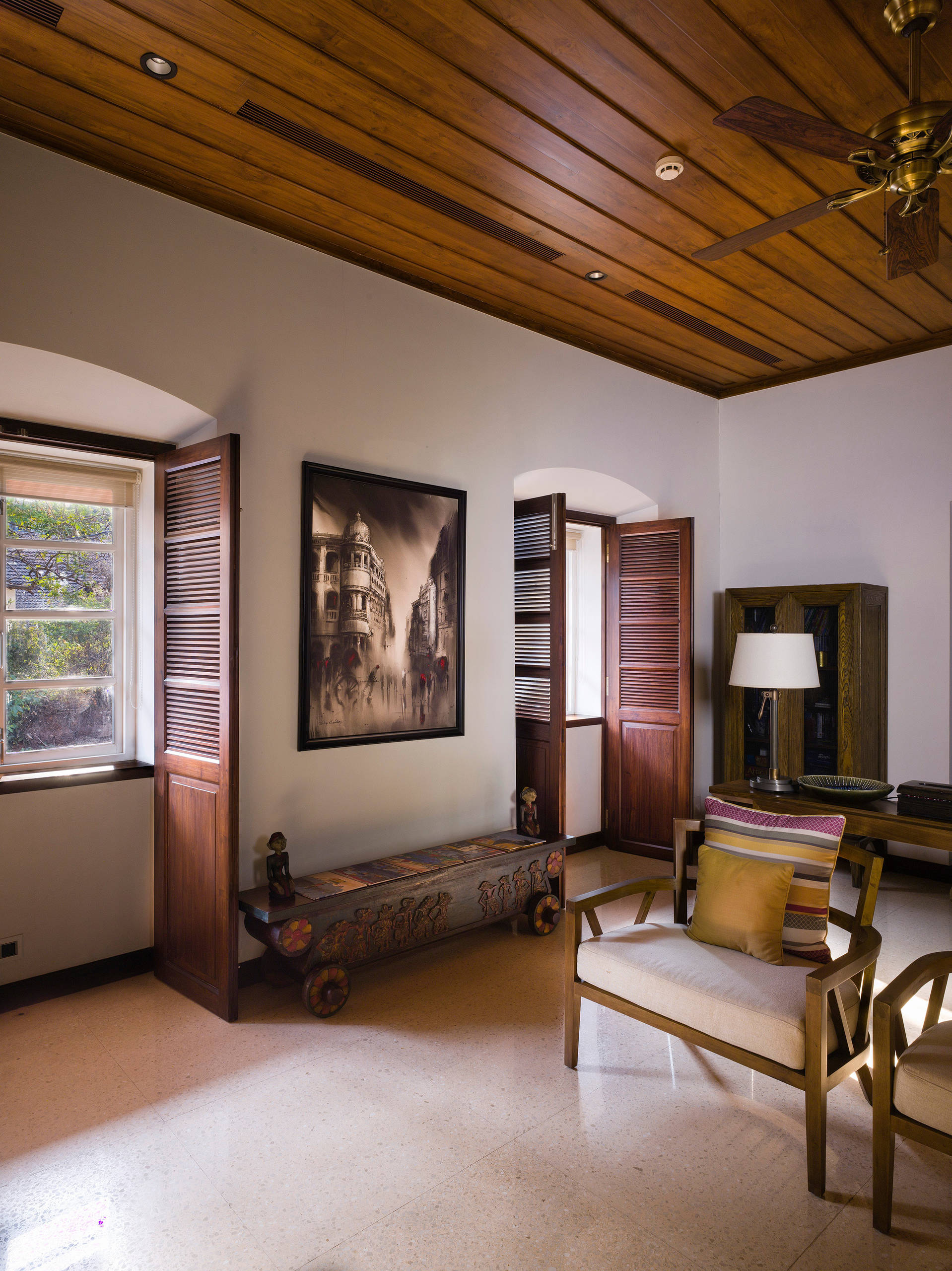 The polished wood-panelled ceiling is an ode to the home’s period architecture; almost all Goan houses built between the 18th and 20th centuries had a false ceiling of wood.