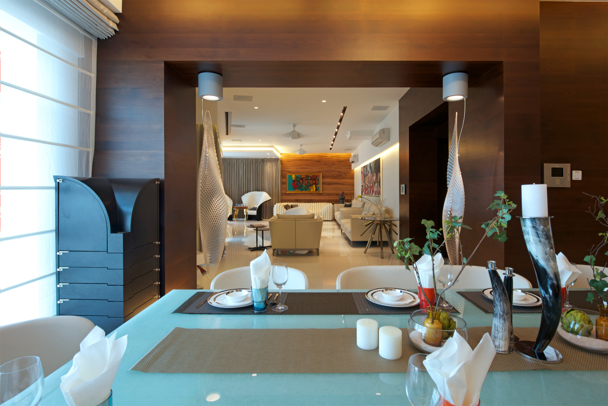 A well-travelled Indian family wanted a consciously designed home that was a blend of luxury and comfort. For ZZ Architects the challenge was to turn this 31st floor apartment into a home in four months and to augment into it a sense of intimacy while retaining a strong design sensibility. The designers focussed on contemporary Indian art and sculpture as well as bespoke crafting to take centre-stage in the experience of the house. “Art had to integrate with design of the spaces,” explains Krupa Zubin.
