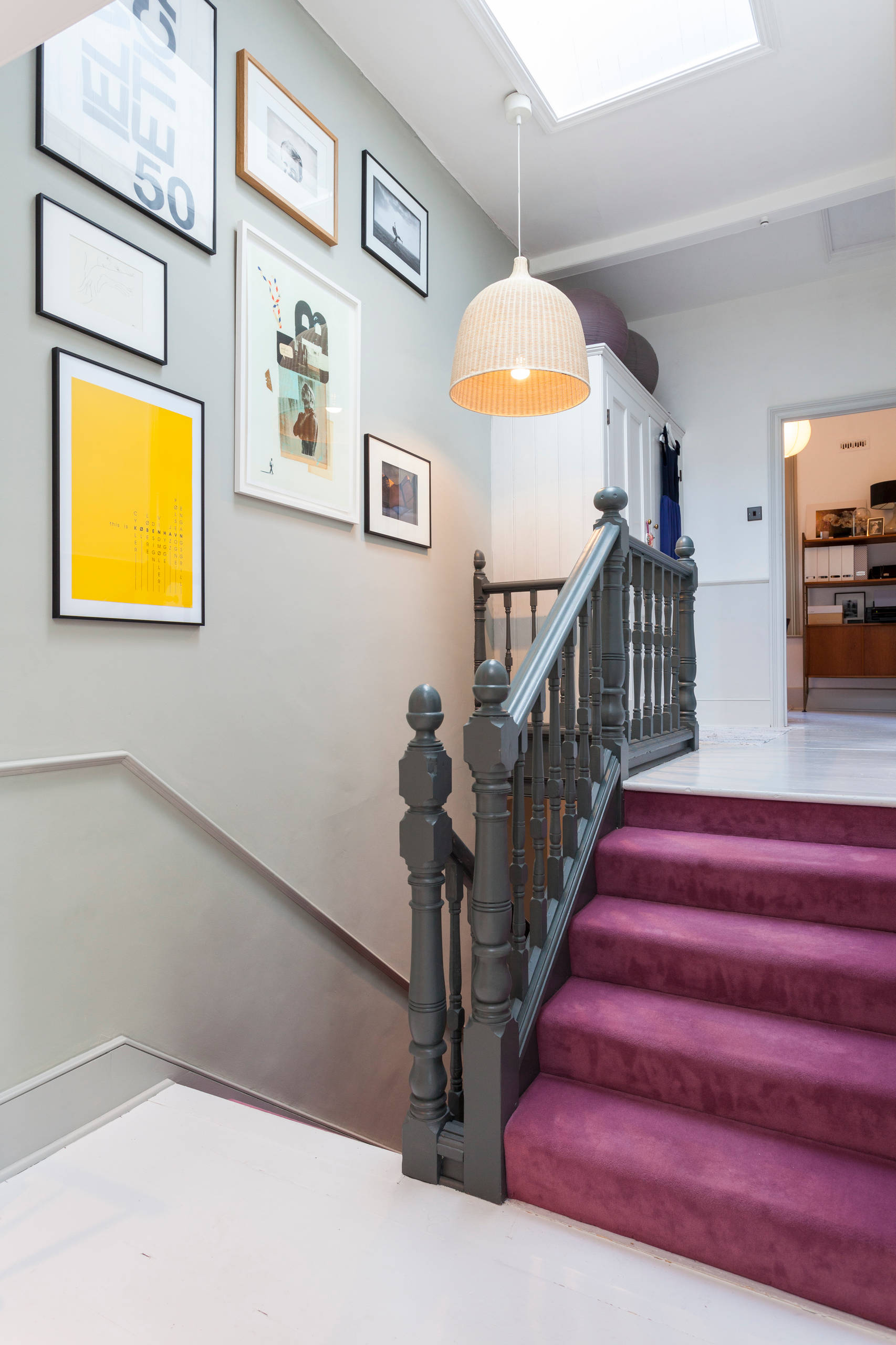 Stairs can be notoriously dark areas of the house, unless you’re lucky enough to have a large window. One way to combat this is to install a glass roof light like the one shown here. This adds height and drama to the stairway, and brings daylight down through the house.