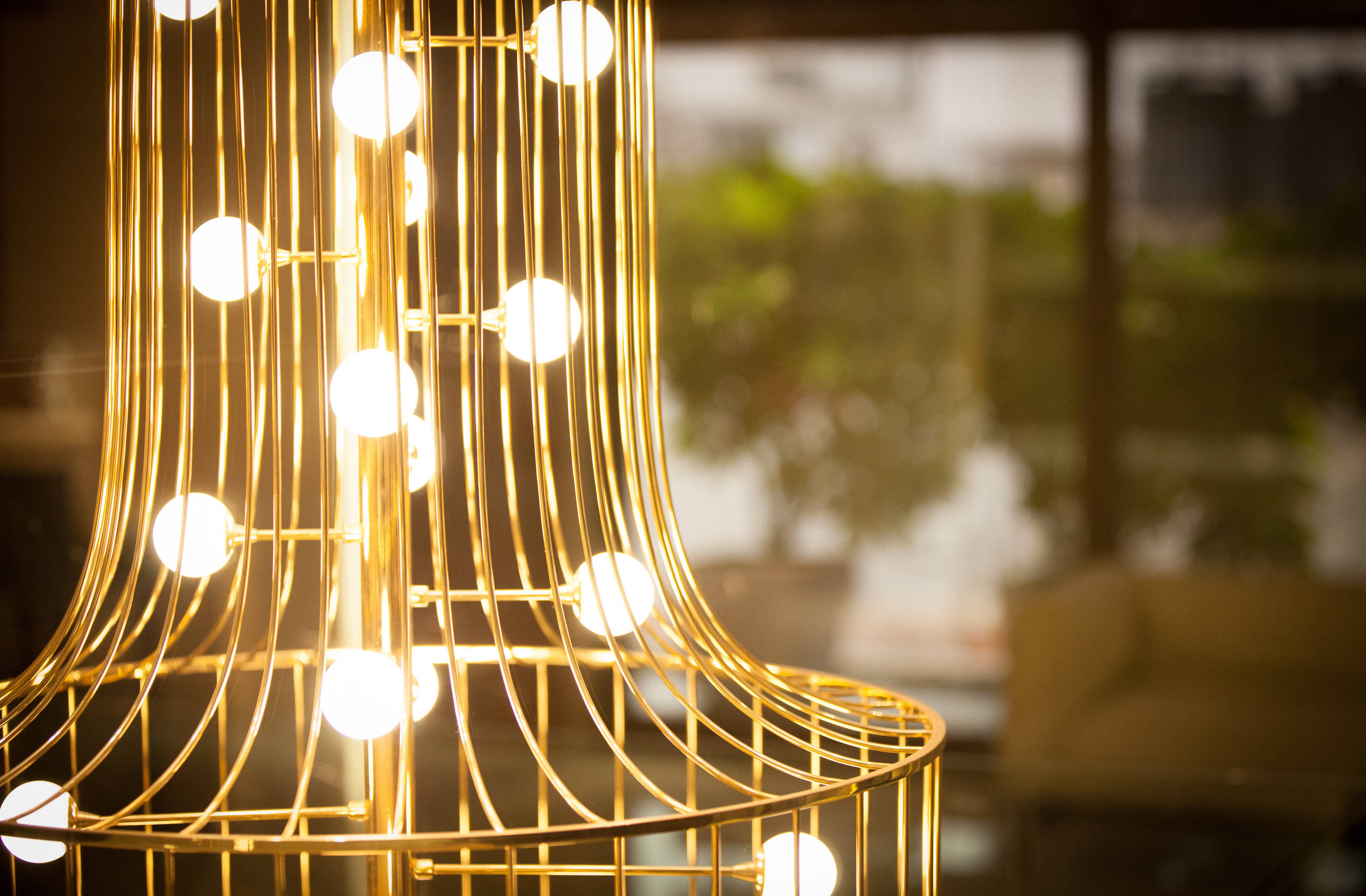 Large illuminators painted gold can make for standalone statement pieces in a room. Choose gold-lined chandeliers or even simple pendant lights in a gold-metallic finish to add a touch of opulence in the space.