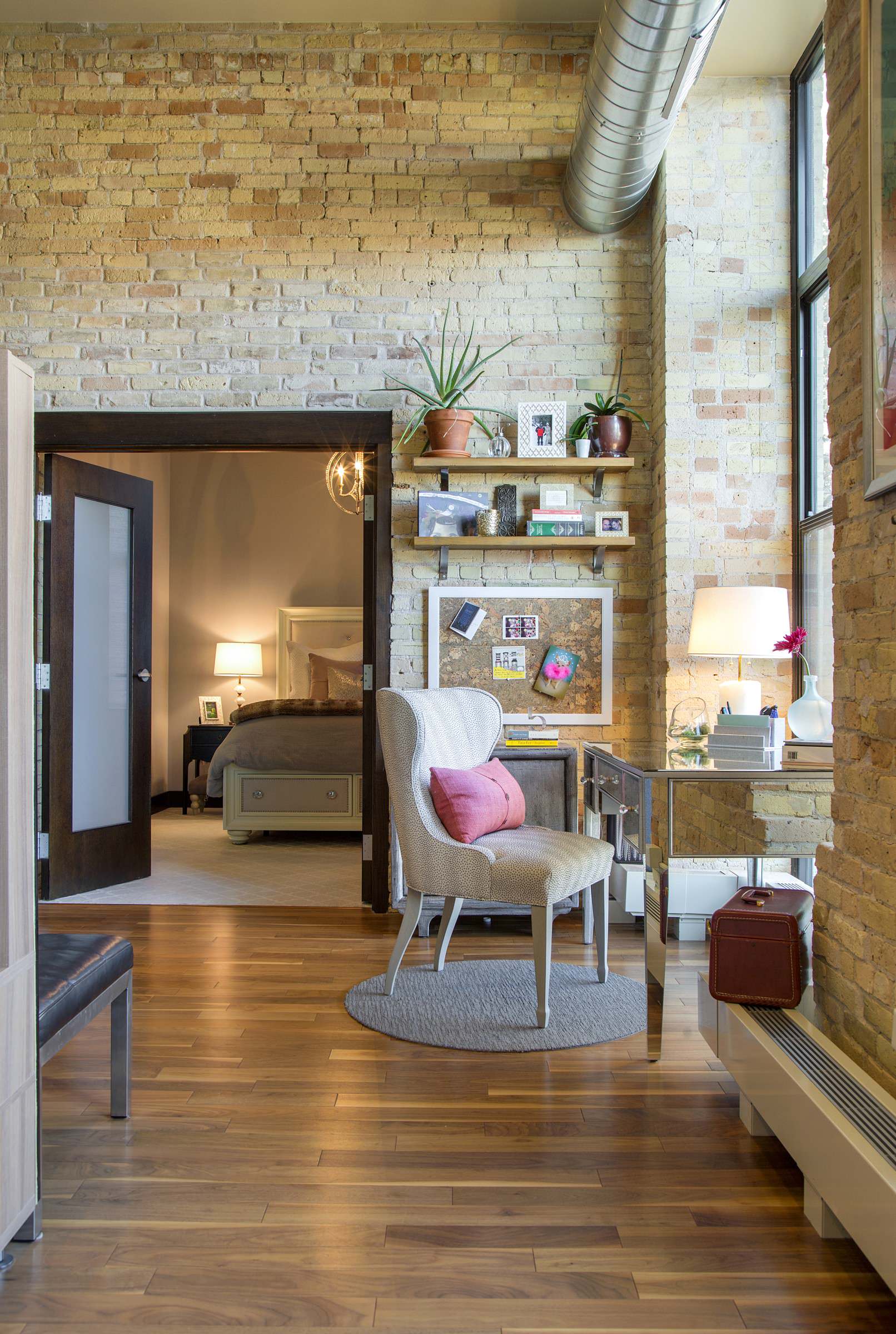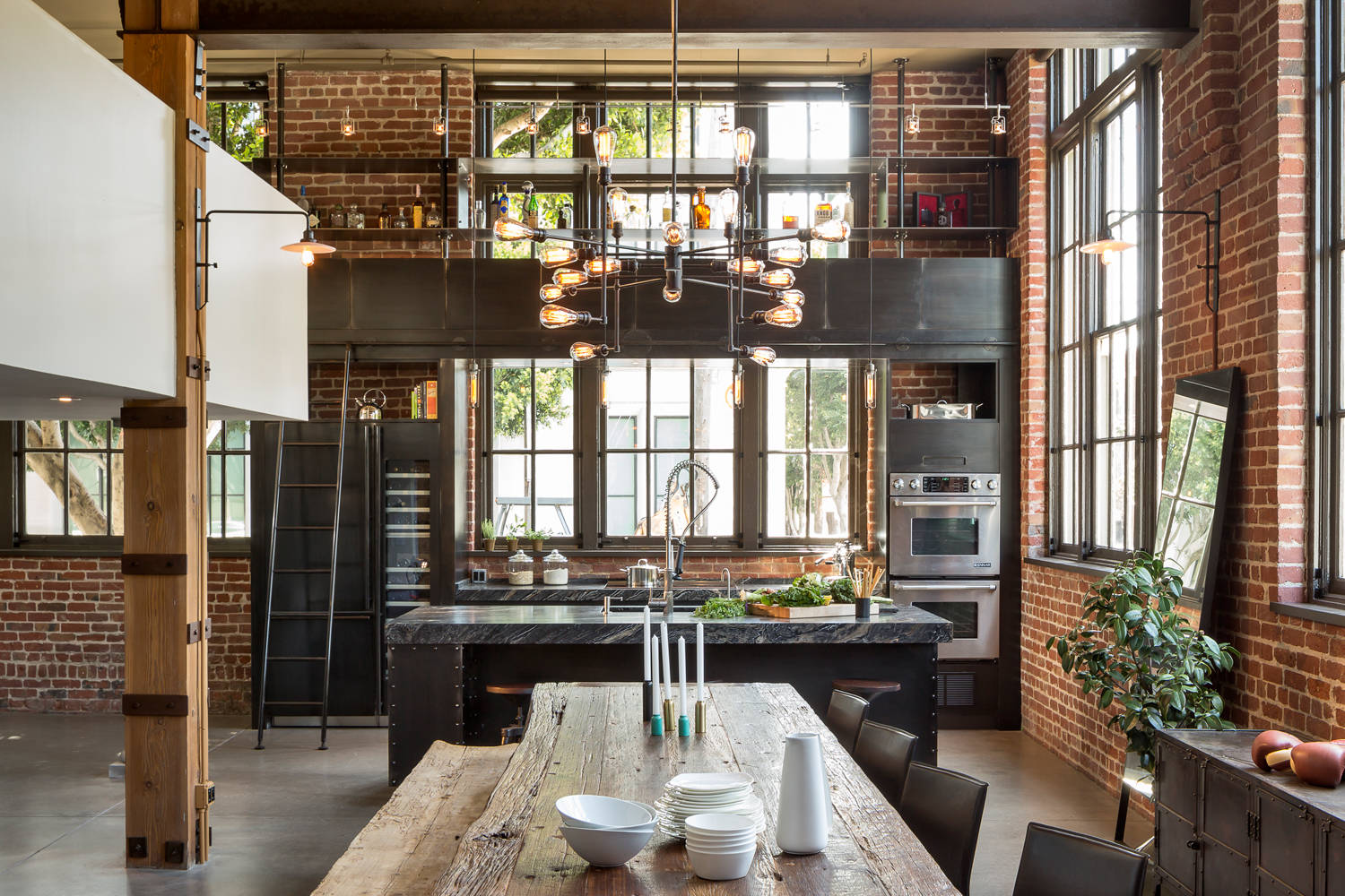 Nothing spells industrial more than neatly exposed walls. Perhaps the easiest way to infuse your space with factory-like character is to strip down the paint and plaster till you hit brick.