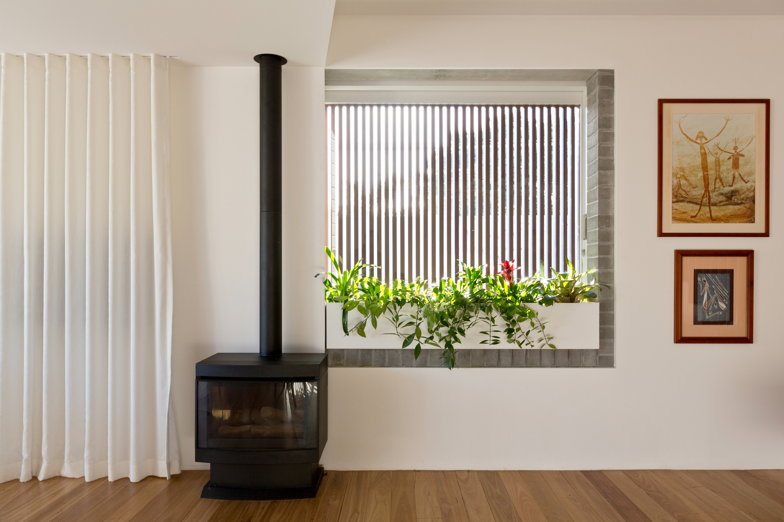 Here a planter has been placed along the window sill and allowed to fill its length.