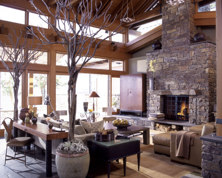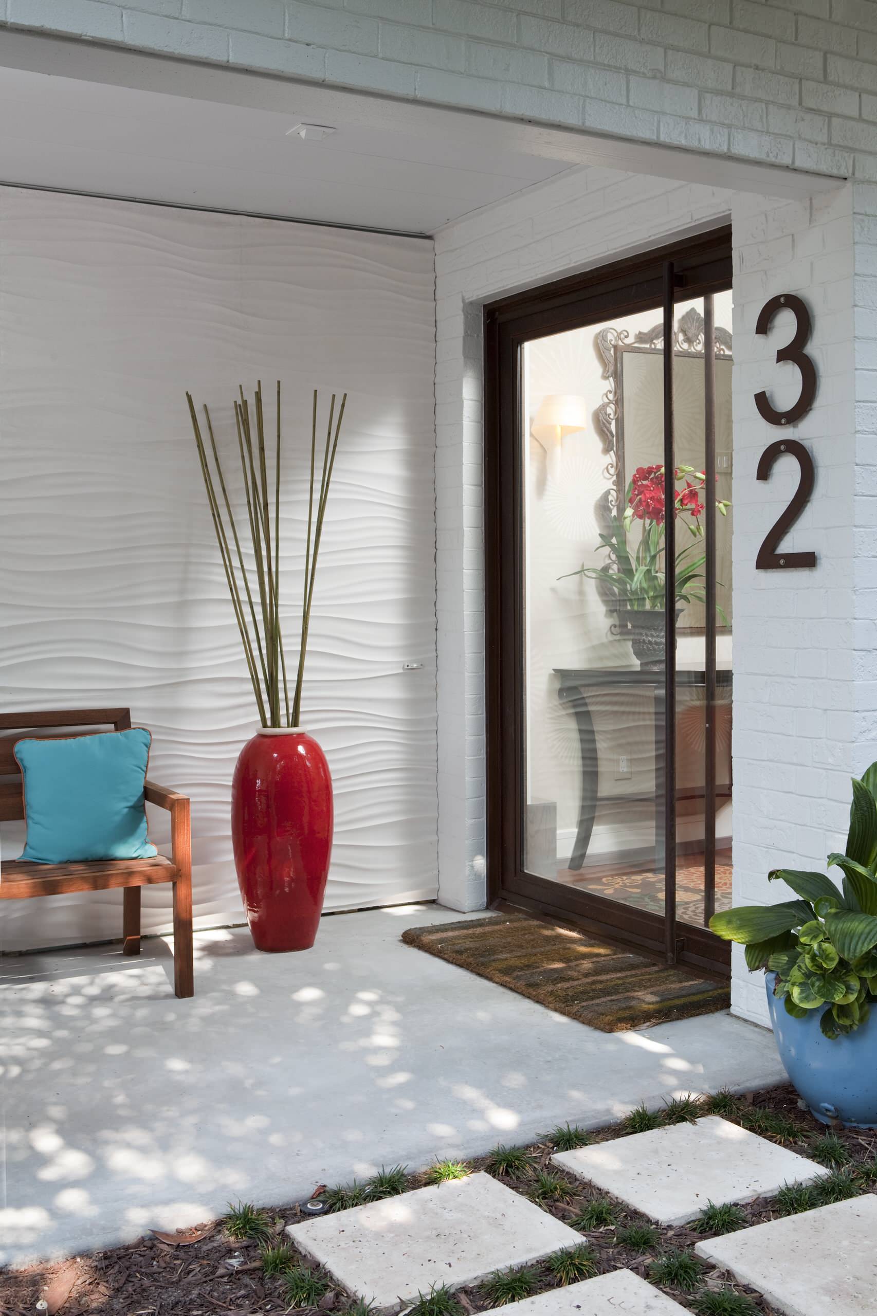 The bare branches of trees have their own natural appeal and can take on a sculptural quality. Besides, they need no maintenance and last longer than the live ones. In this picture, the curved and organic form of the branches provide a foil to the existing geometry and linear lines of the home.