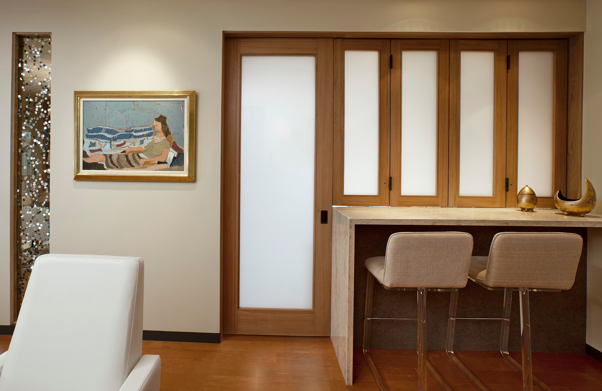 If keeping your kitchen dust-free seems to be a problem or you still want a bit more privacy, you can always add a set of sliding or folding doors and windows as shown in this image. Made of opaque glass framed with wooden panelling, these can be folded up and don’t get in the way, unlike regular doors.