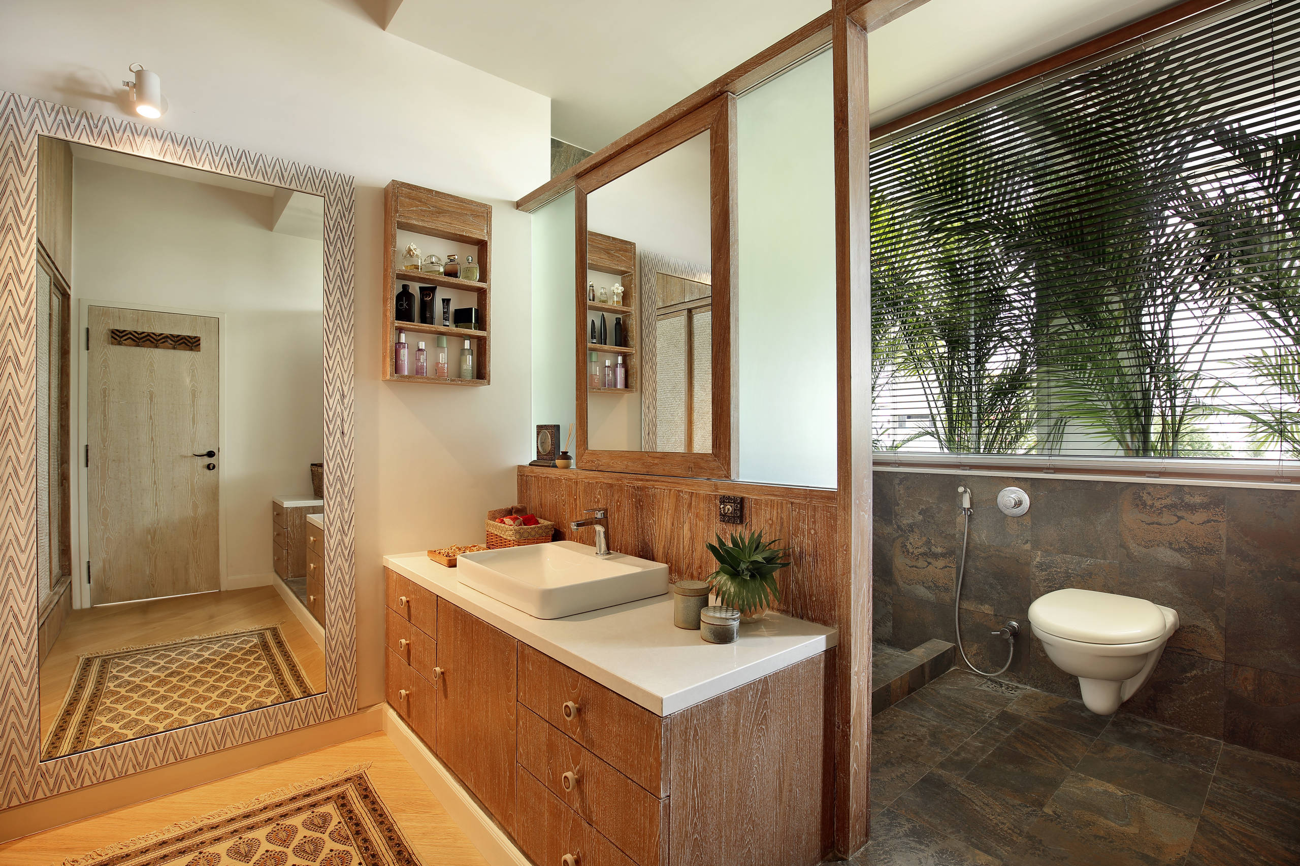 Tip: To ensure that there is no dampness within the bathroom, install an effective exhaust fan and make provision for ample natural light and ventilation.